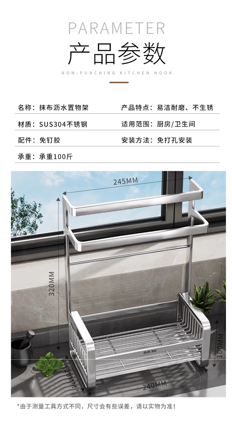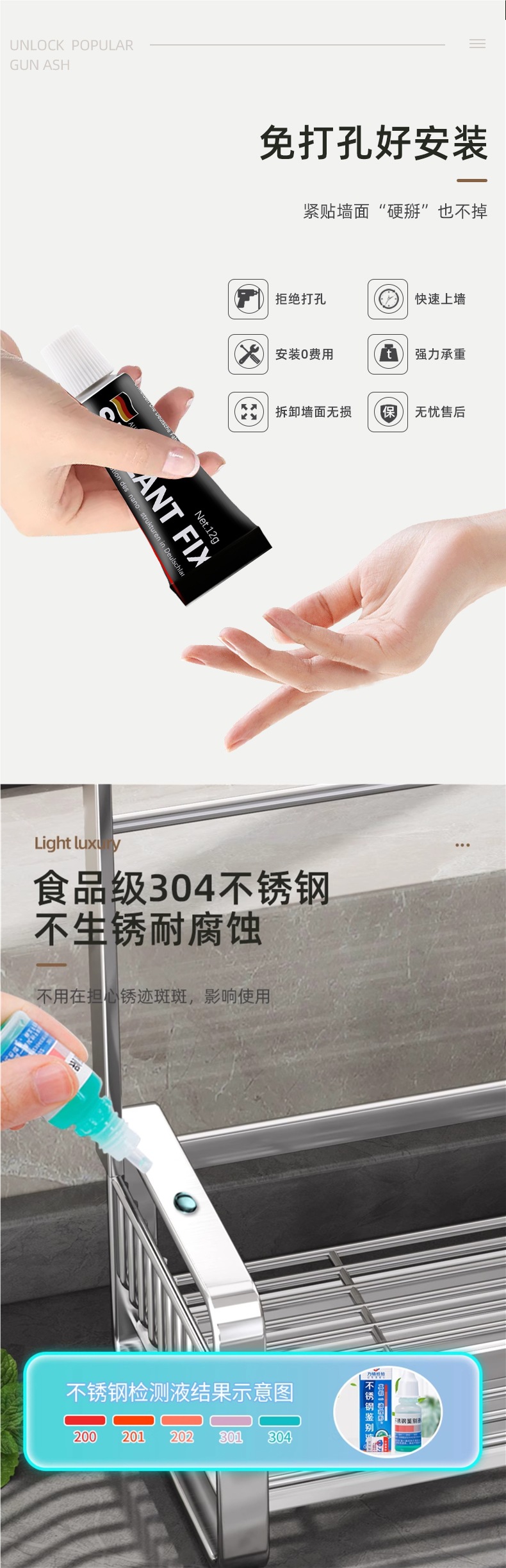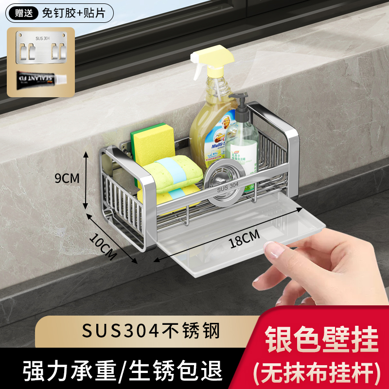• 이중 극 밝은 은색 [벽걸이/조리대 겸용] + 탈착식 플라스틱 물받이, 무료 네일 접착제 + 패치