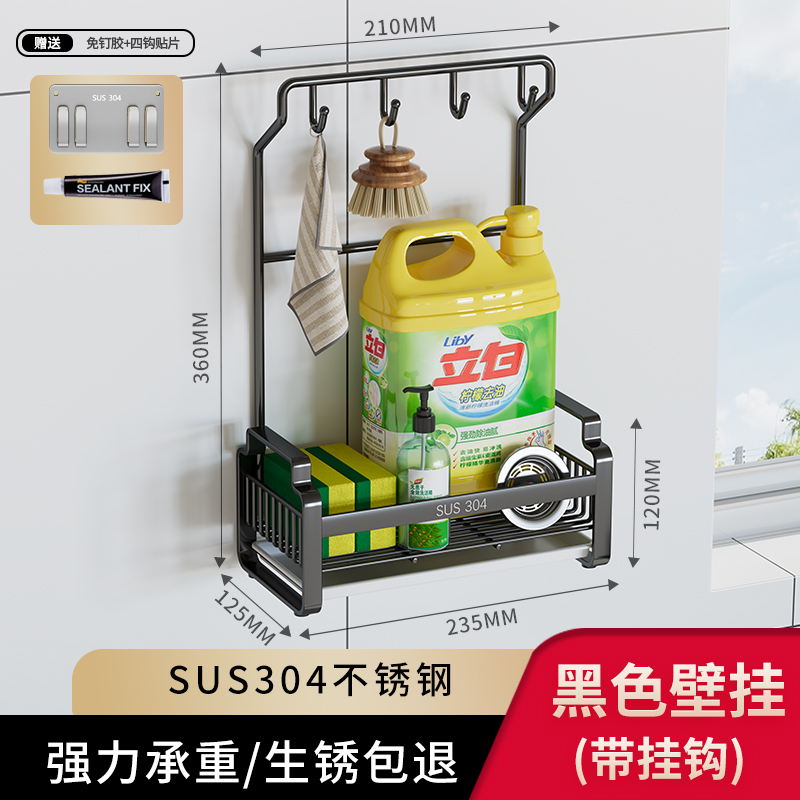 • [고리 4개] 카본 블랙 [벽걸이/조리대 겸용] + 탈착식 플라스틱 물받이 [다기능형]