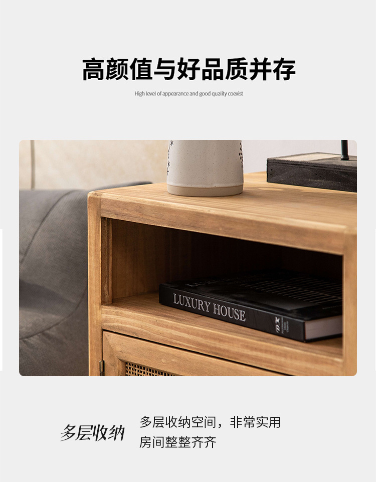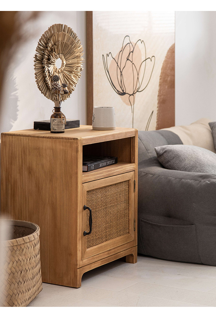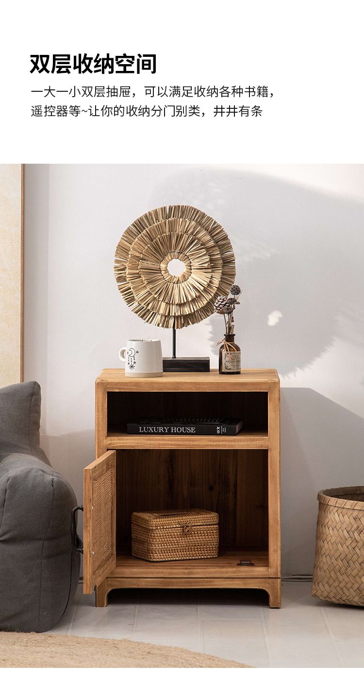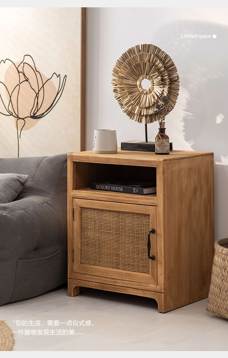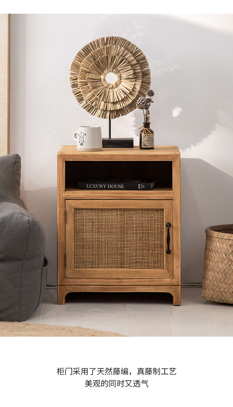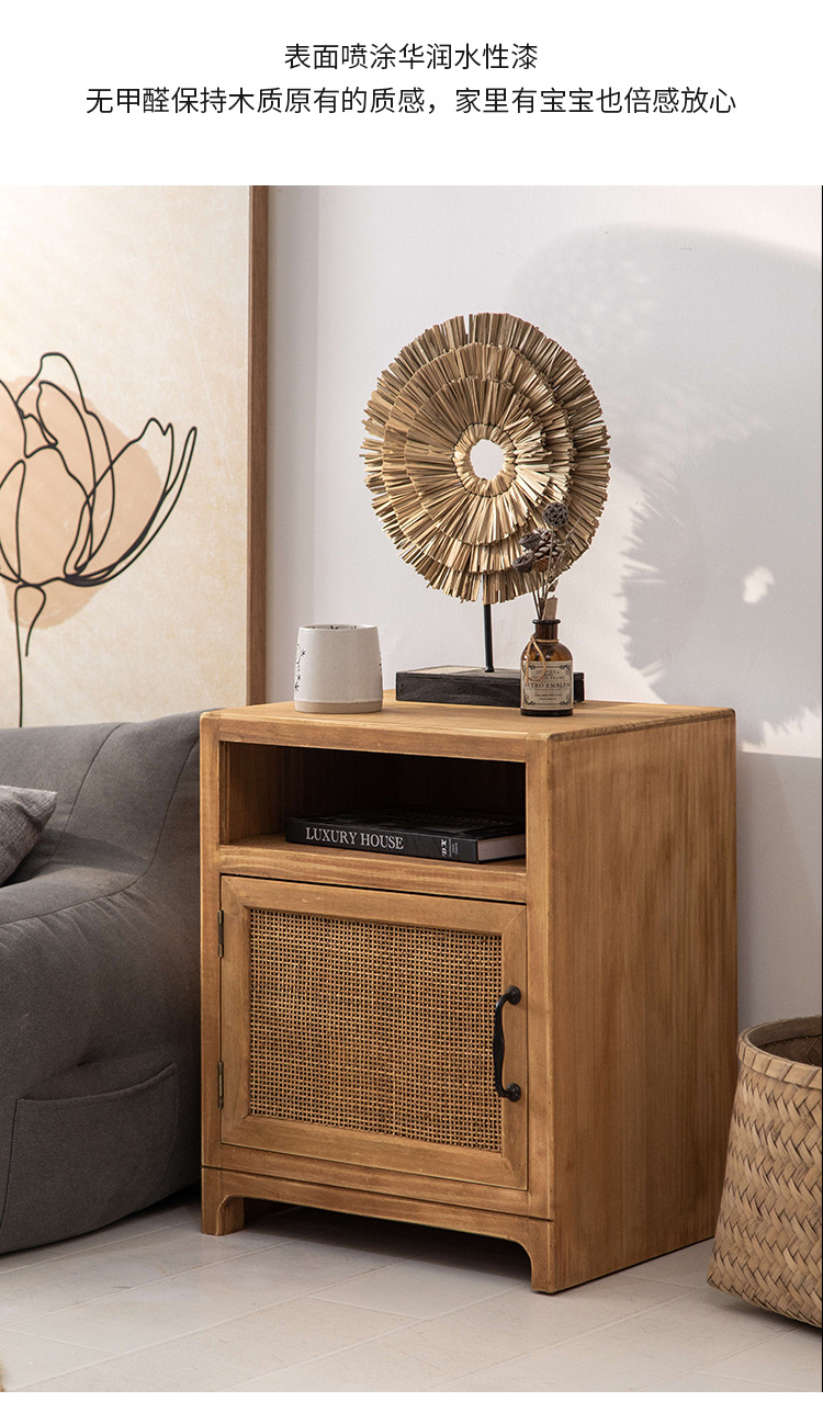중국식 등나무 침대 옆 탁자, 간단한 수납 선반, 침대 옆 작은 캐비닛, 수납 캐비닛, 원목 수납 캐비닛, 어린이 신제품스토어 가기