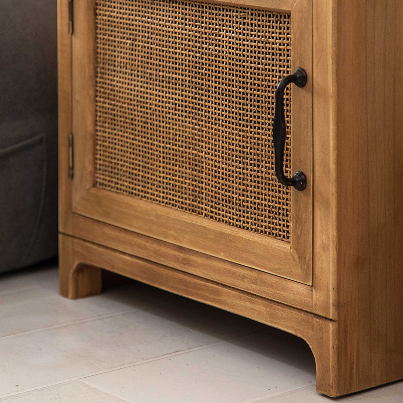 중국식 등나무 침대 옆 탁자, 간단한 수납 선반, 침대 옆 작은 캐비닛, 수납 캐비닛, 원목 수납 캐비닛, 어린이 신제품