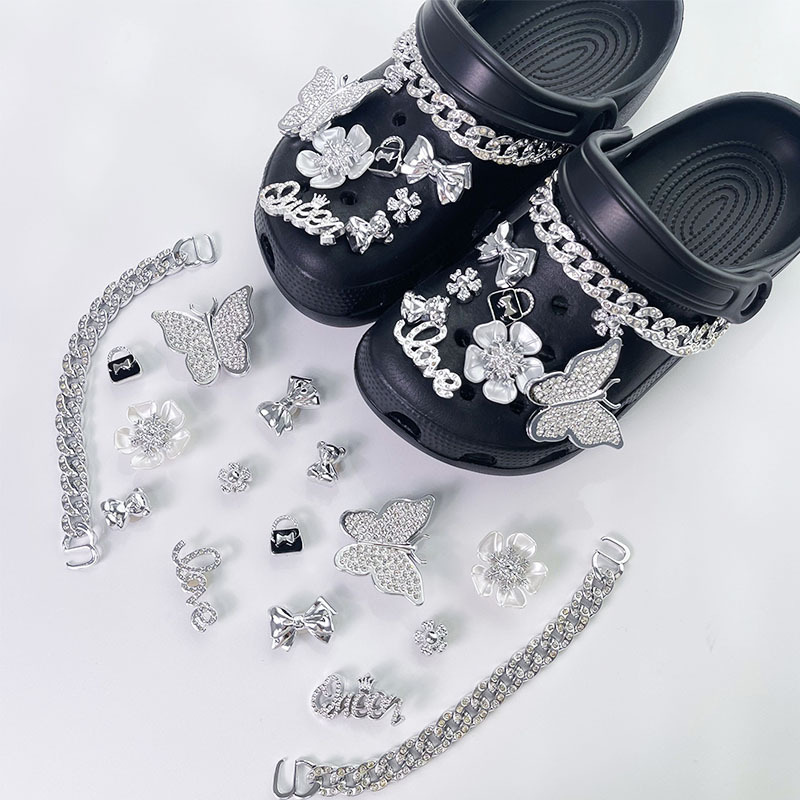 • 진주 체인 다이아몬드 나비 [12개입 버클]#신발은 포함되지 않습니다]
