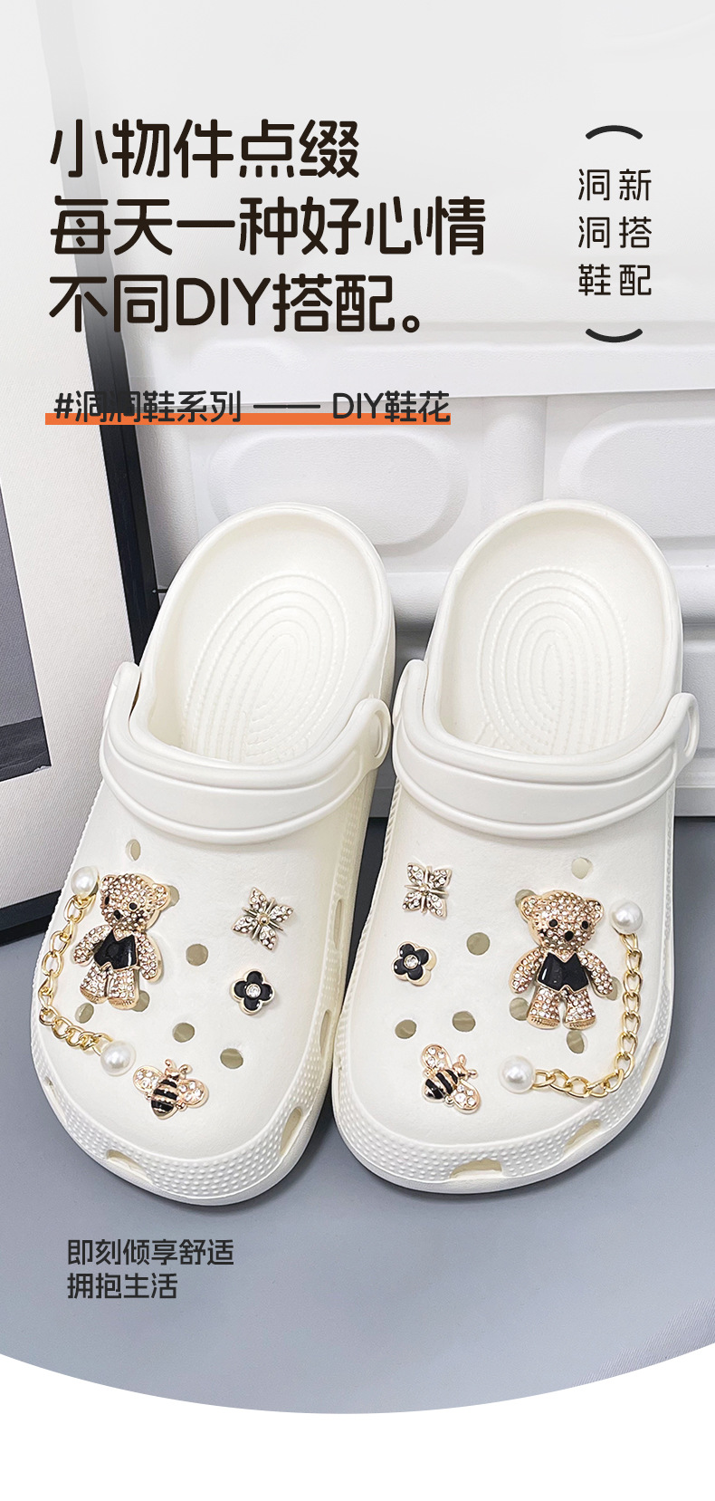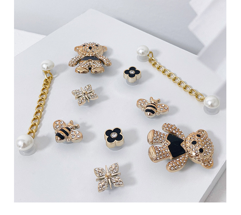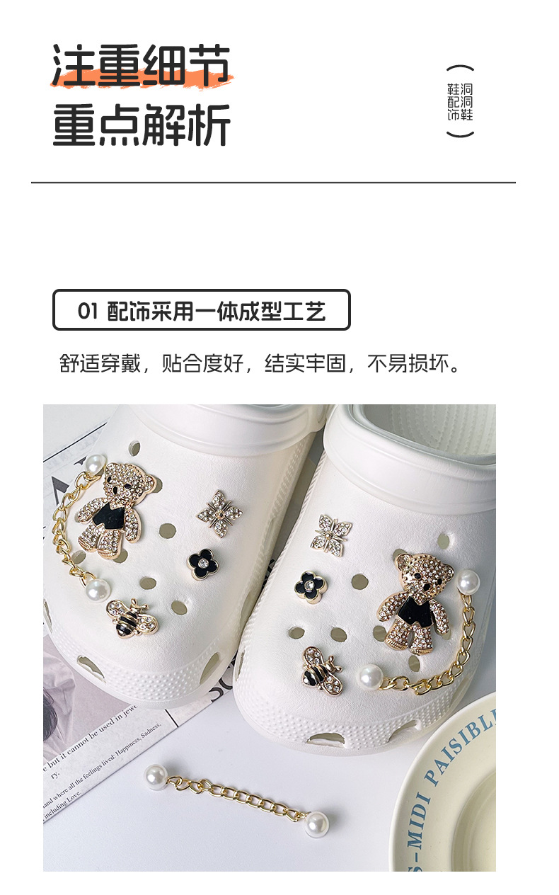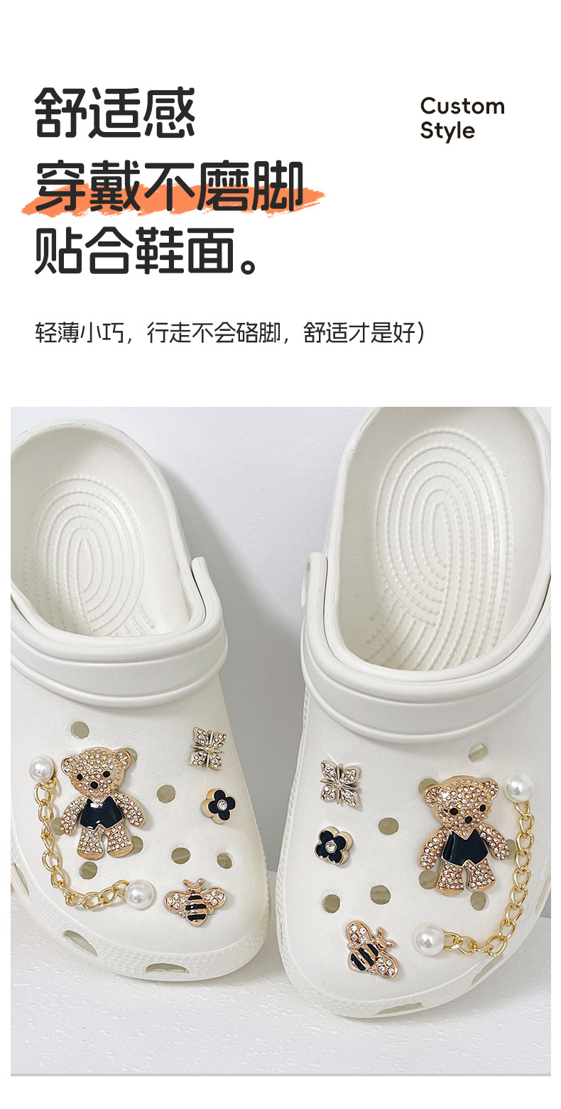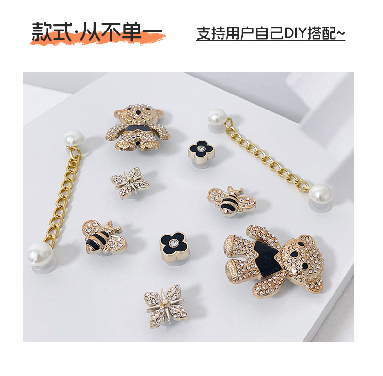 만화 귀여운 곰 구멍 신발 버클 금속 스타일 꿀벌 네잎 클로버 무료 매칭 장식 버클 diy 신발 꽃스토어 가기