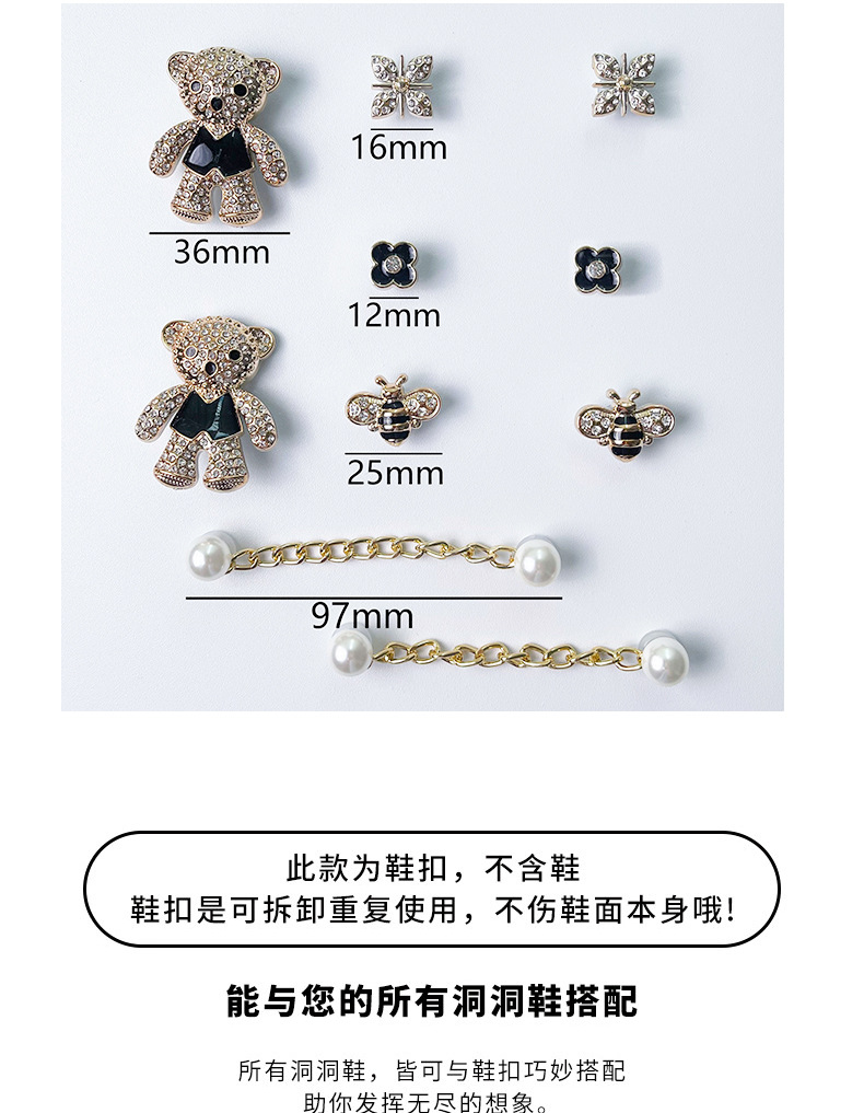 • 진주 체인 샤넬 스타일 곰돌이 [12개입 버클 포함]#신발은 포함되지 않습니다]