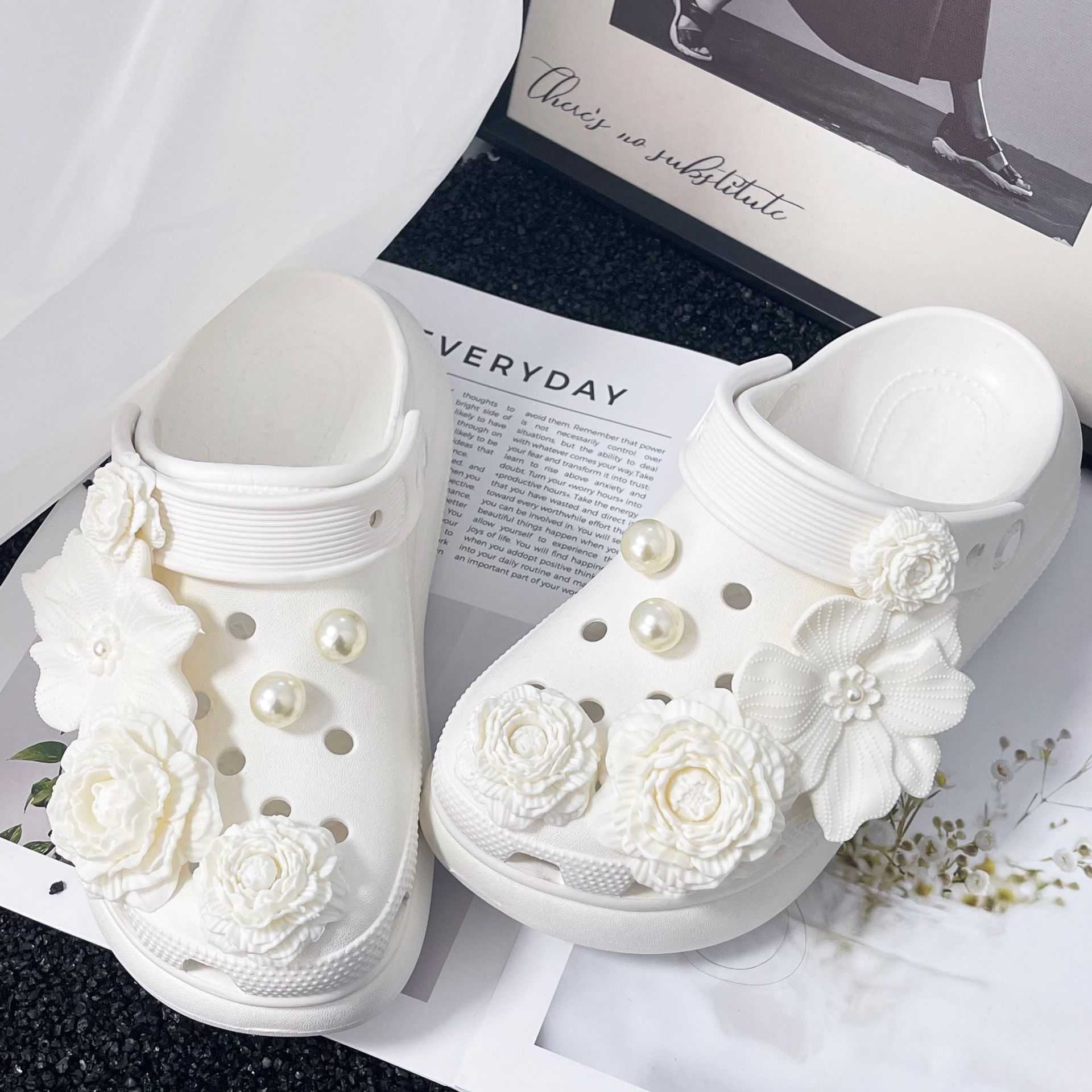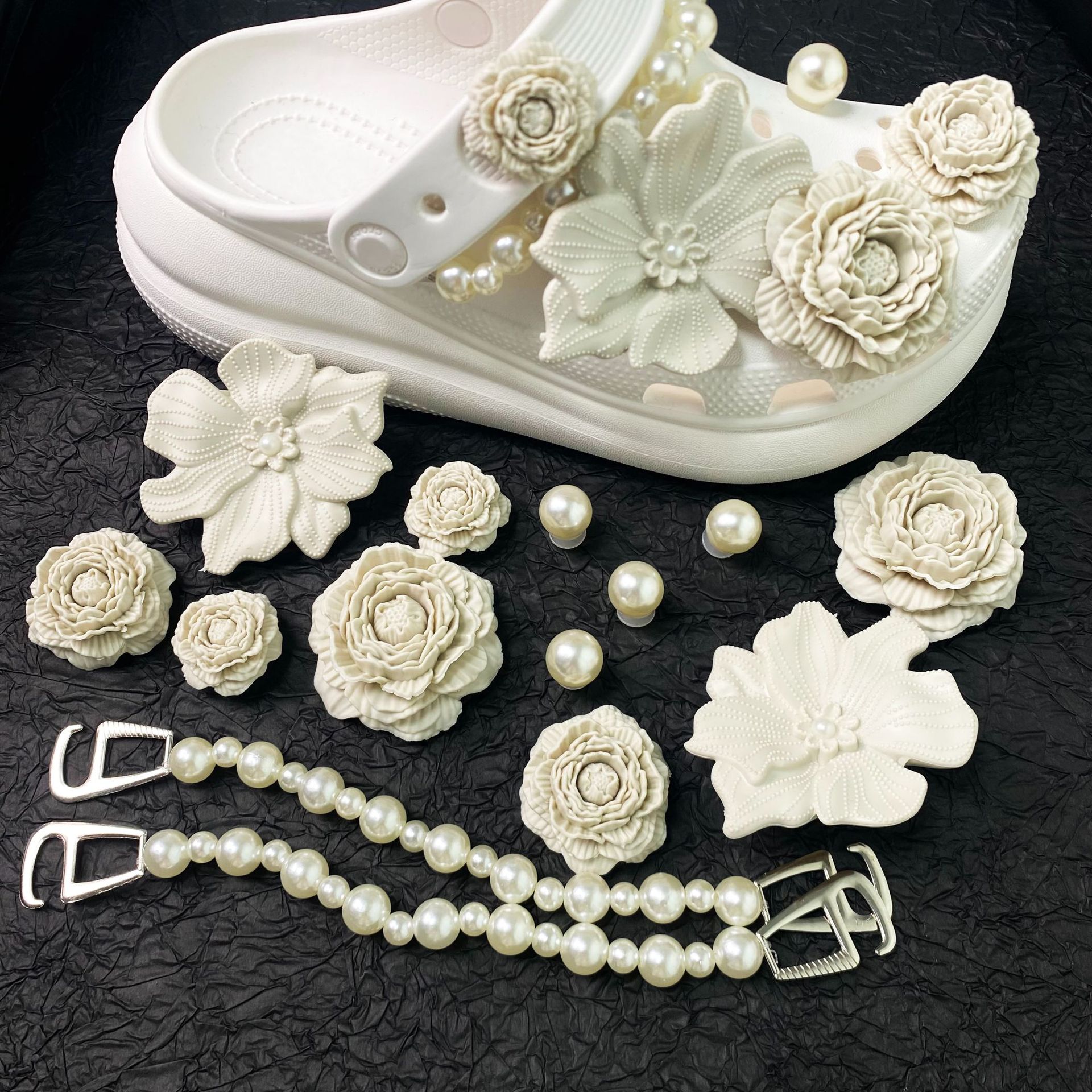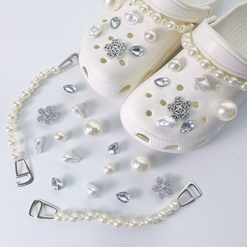 • 부케 - 화이트 + 진주 + 체인 [14개 버클 포함]#신발은 포함되지 않습니다]