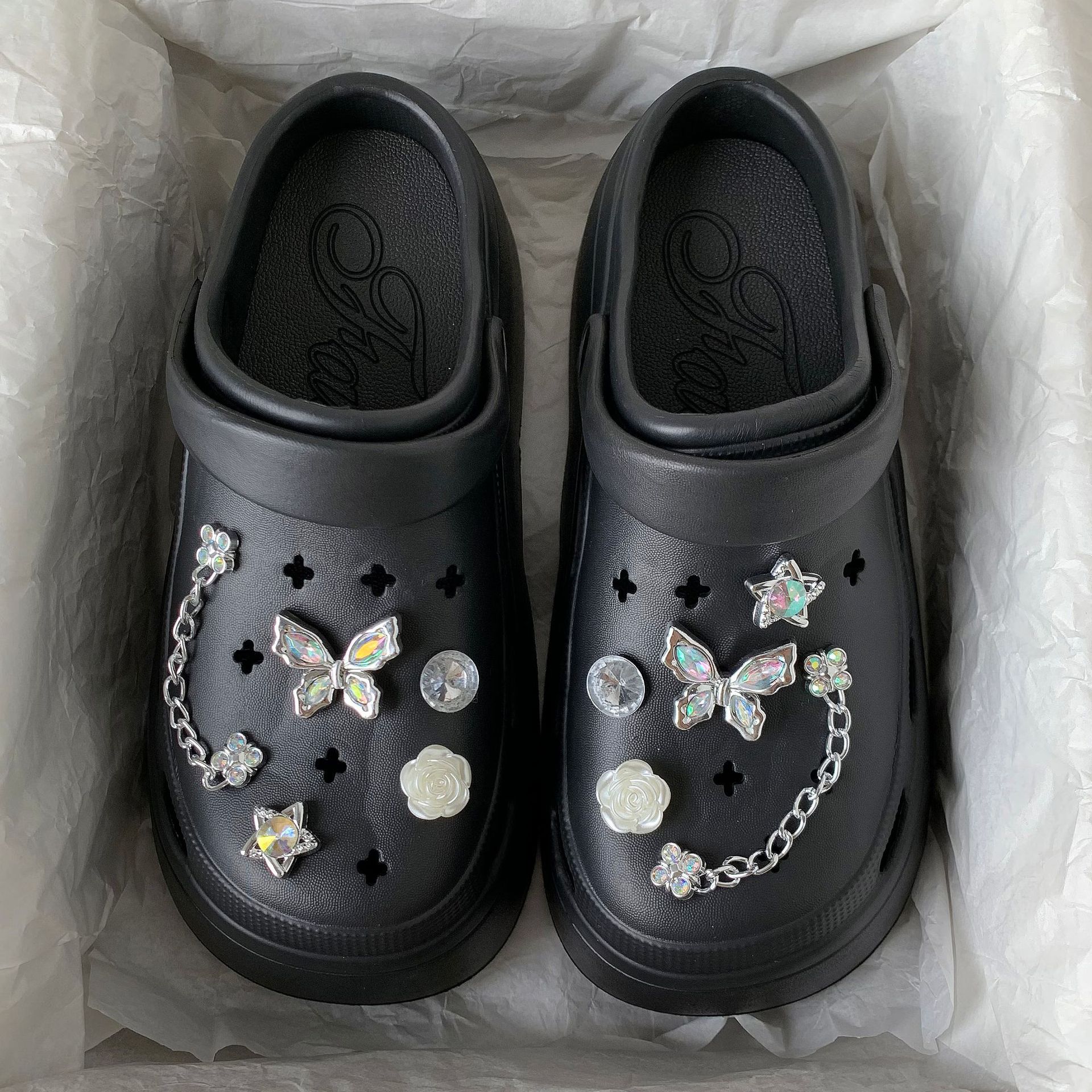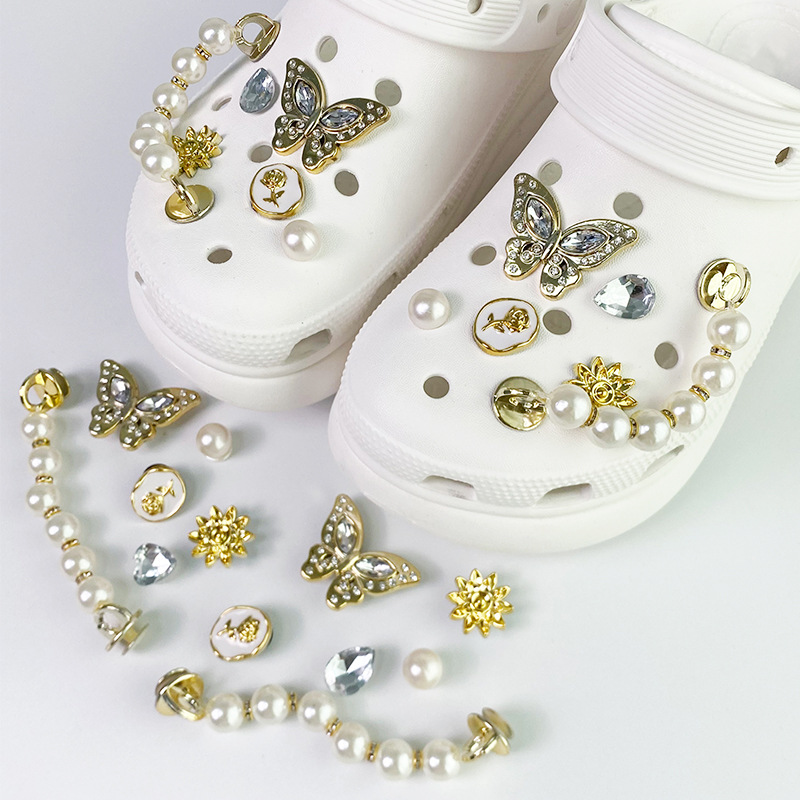 • 진주 체인 크리스탈 나비 [12개입 버클 포함]#신발은 포함되지 않습니다]