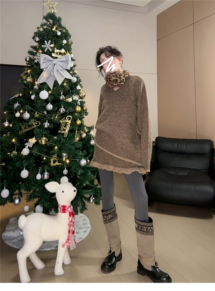2025년 가을 겨울 여성을 위한 초봄 회색 스웨터 니트 드레스 새로운 한국 스타일 전체 세트 느낌스토어 가기
