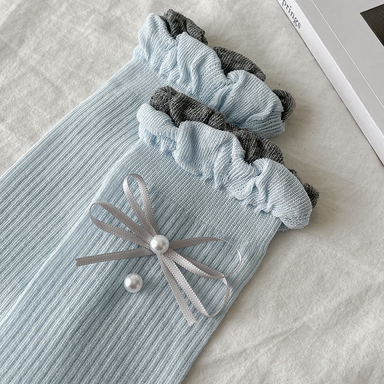레이스 진주 파일 양말 여성용 본리스 양말 리본 일본식 트렌디 여성 양말 miu 발레 스타일 종아리 양말