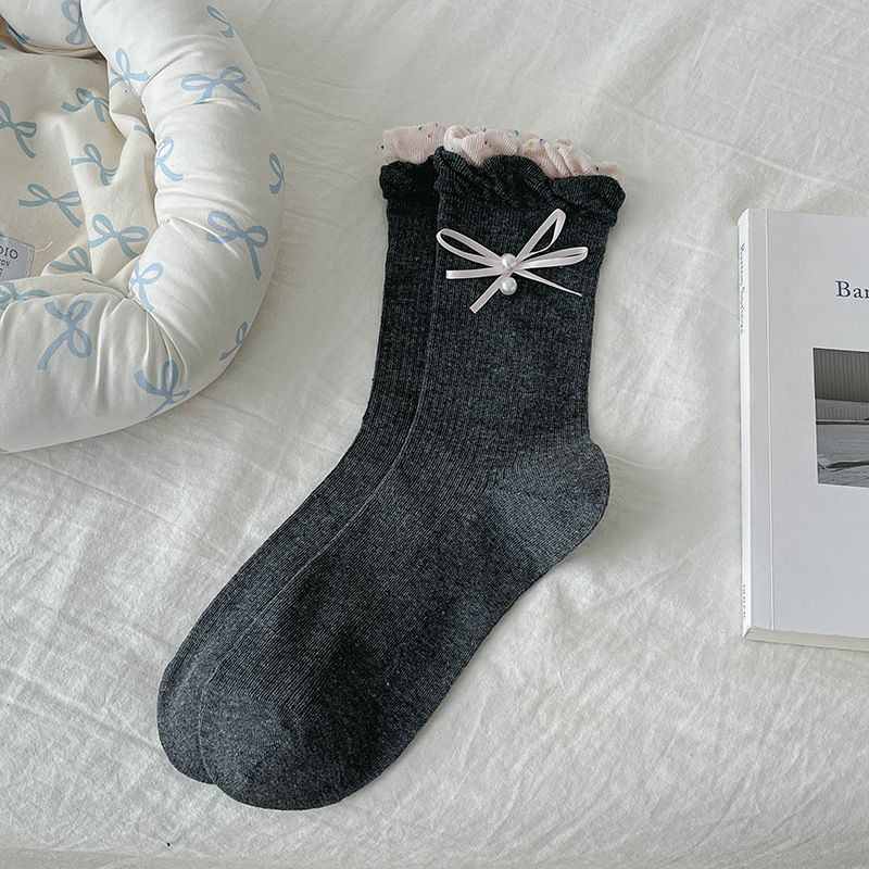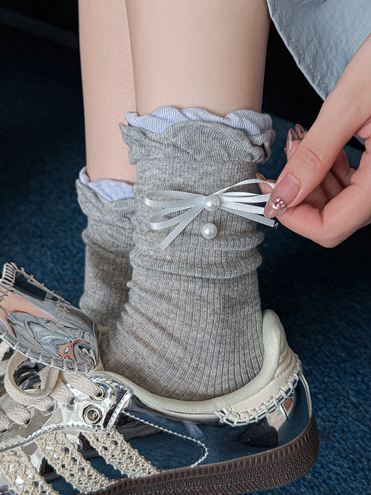 레이스 진주 파일 양말 여성용 본리스 양말 리본 일본식 트렌디 여성 양말 miu 발레 스타일 종아리 양말스토어 가기
