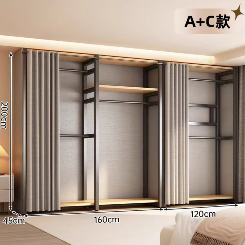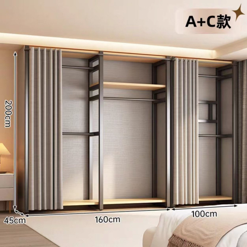 금속 옷장 홈 침실 바닥에 세워진 전체 강철 프레임 완전히 둘러싸인 방진 무료 조합 개방형 간단한 옷장