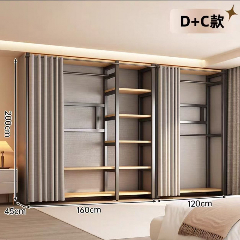 금속 옷장 홈 침실 바닥에 세워진 전체 강철 프레임 완전히 둘러싸인 방진 무료 조합 개방형 간단한 옷장스토어 가기