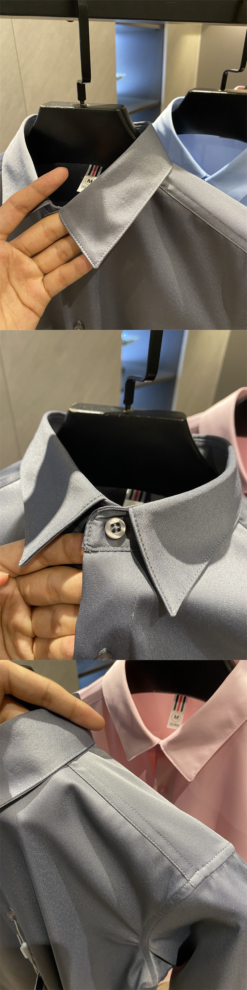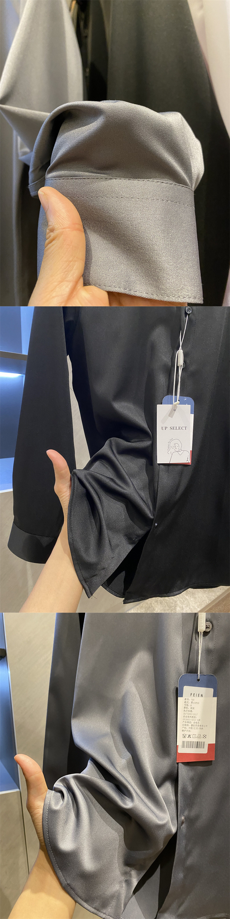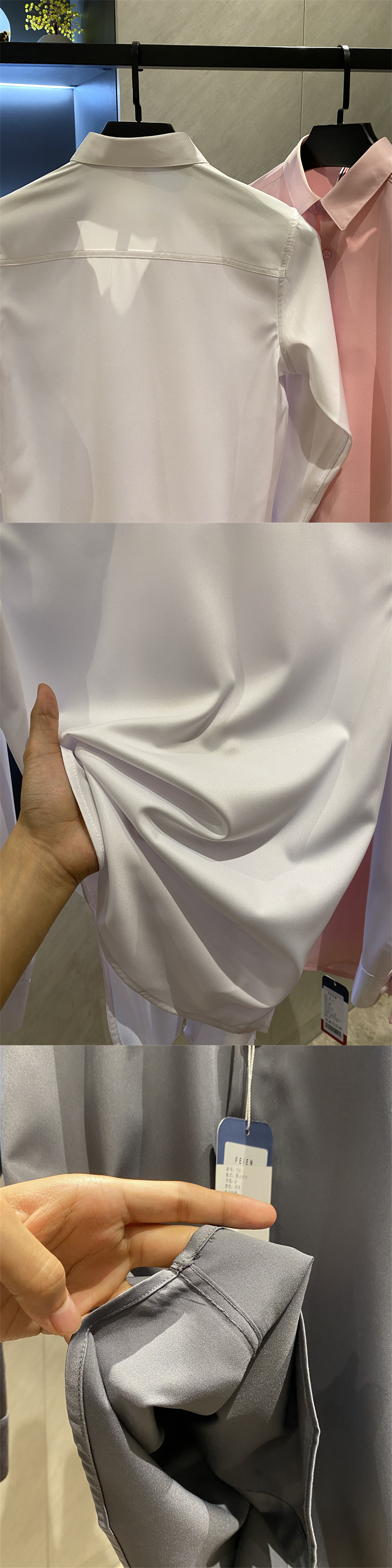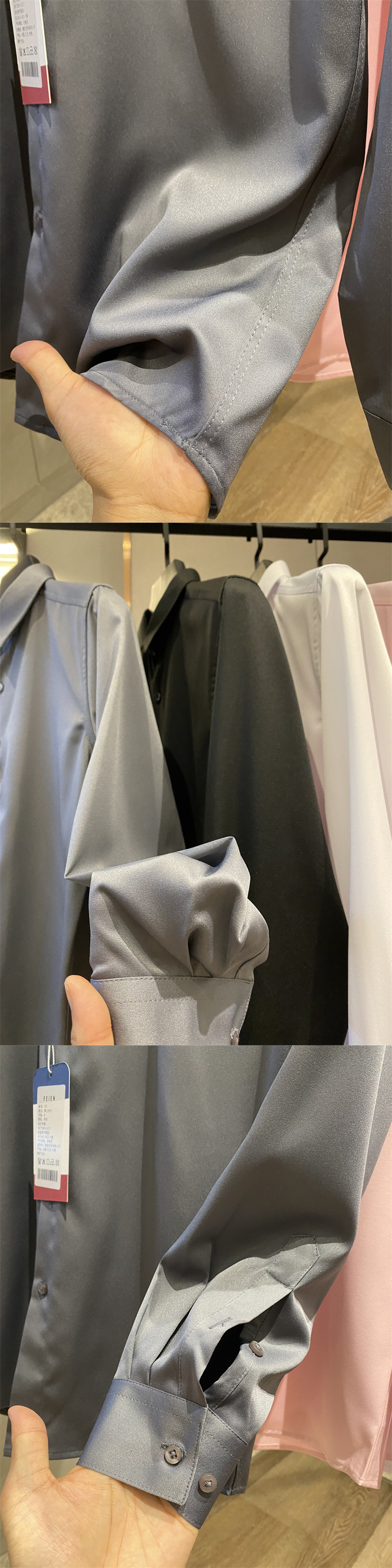 얇은 짧은 셔츠 트렌디 실키 드레이프 2025 봄 여름 새로운 솔리드 컬러 캐주얼 긴팔 셔츠 남성용스토어 가기