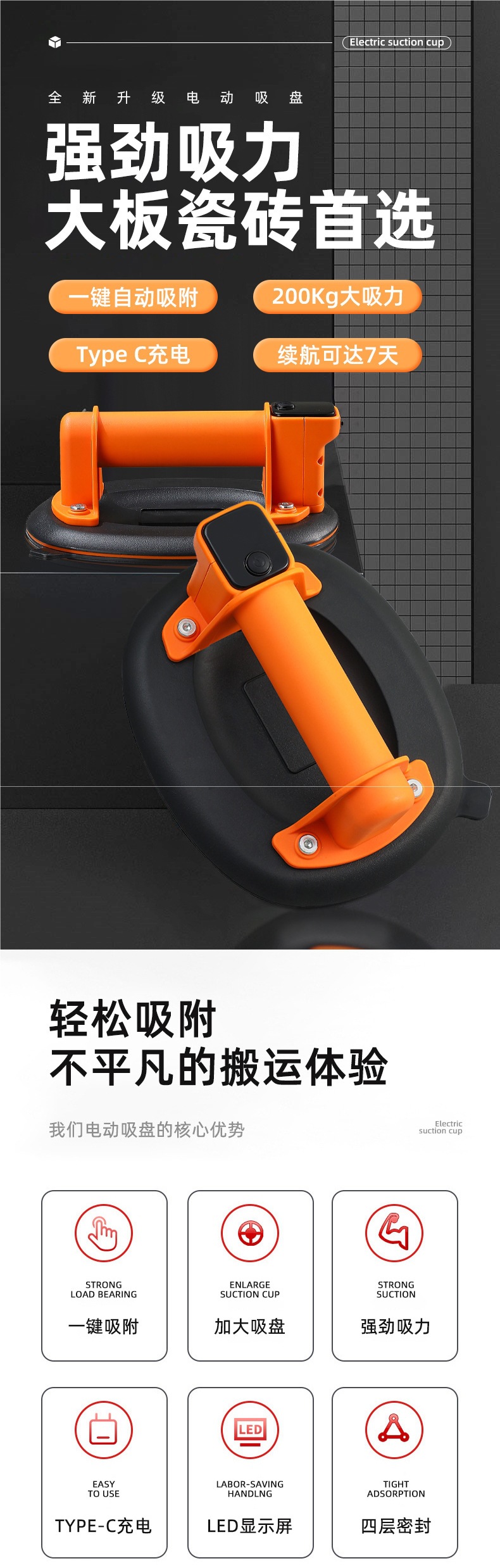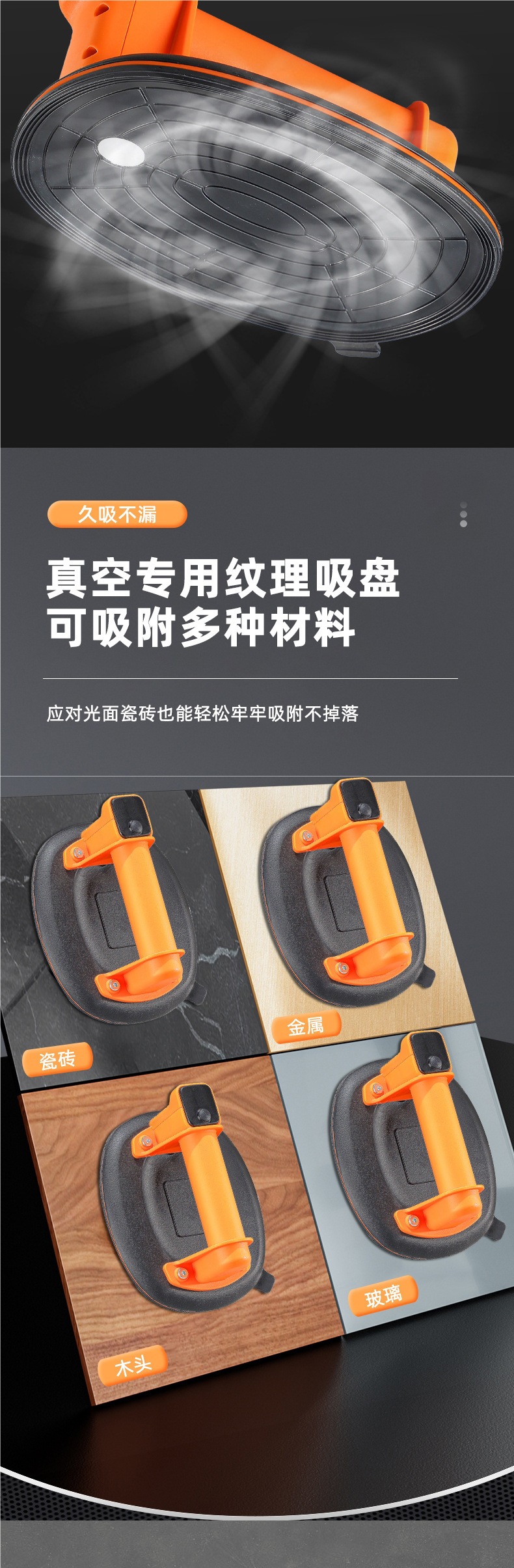 새로운 8inch 공기 펌프 자동 공기 보충 전기 빨판 진공 3 레이어 타일 유리 처리 빨판 헤비 듀티 처리기