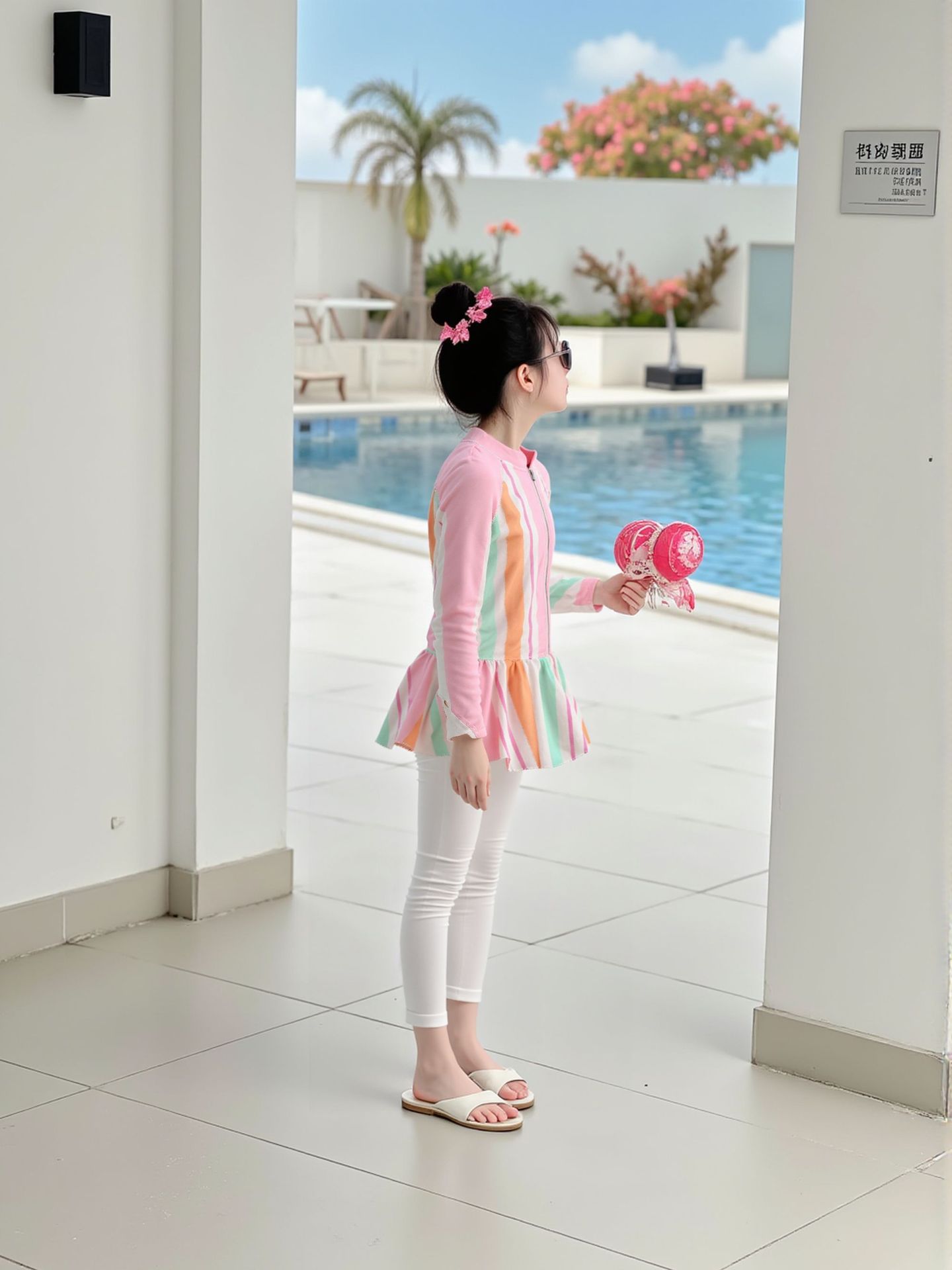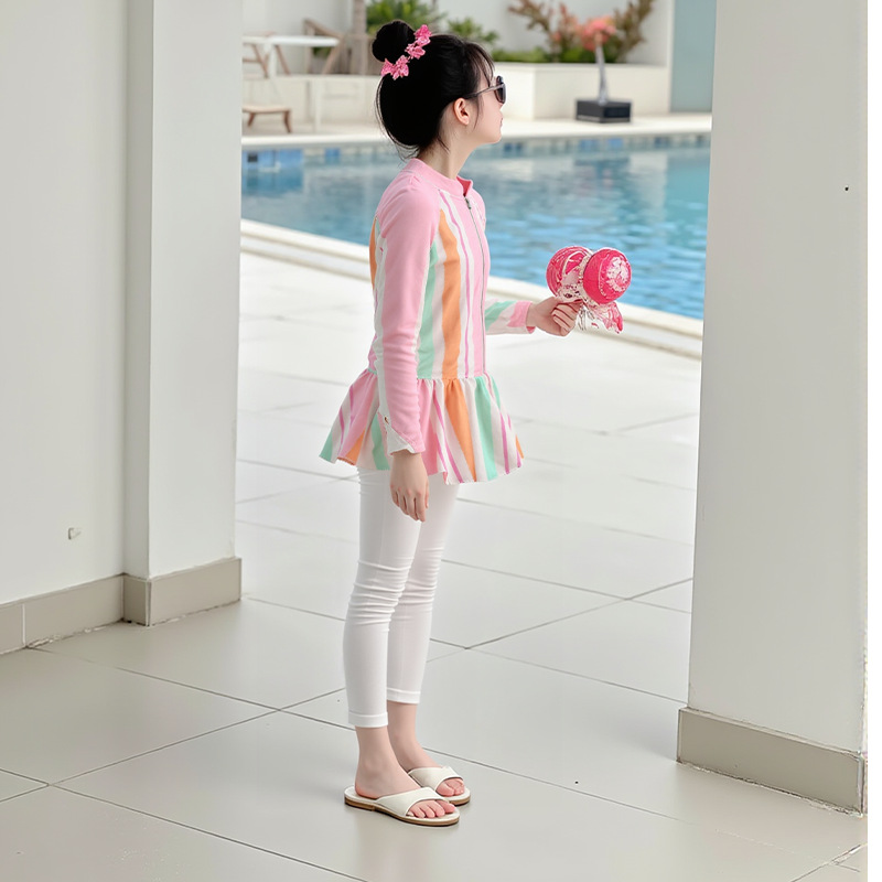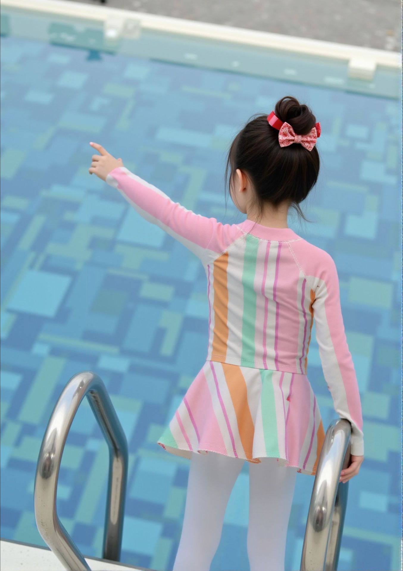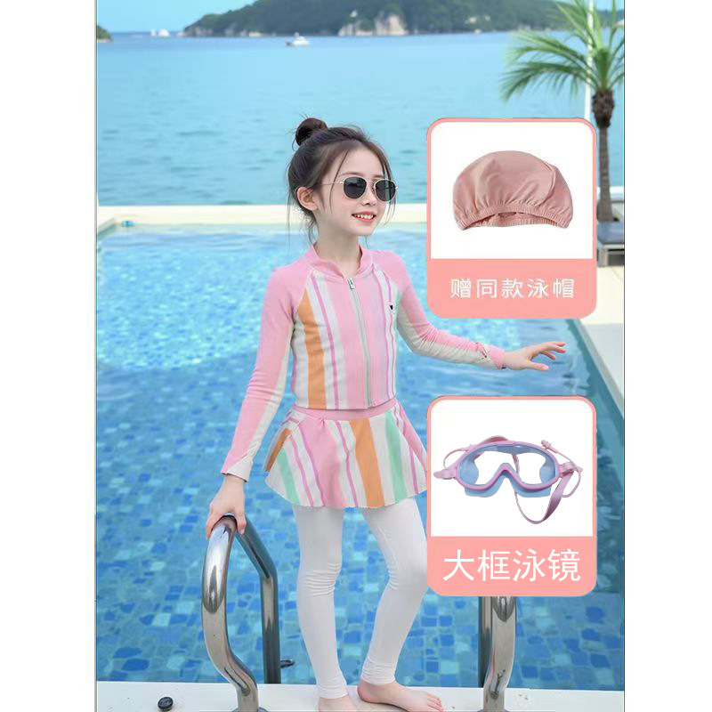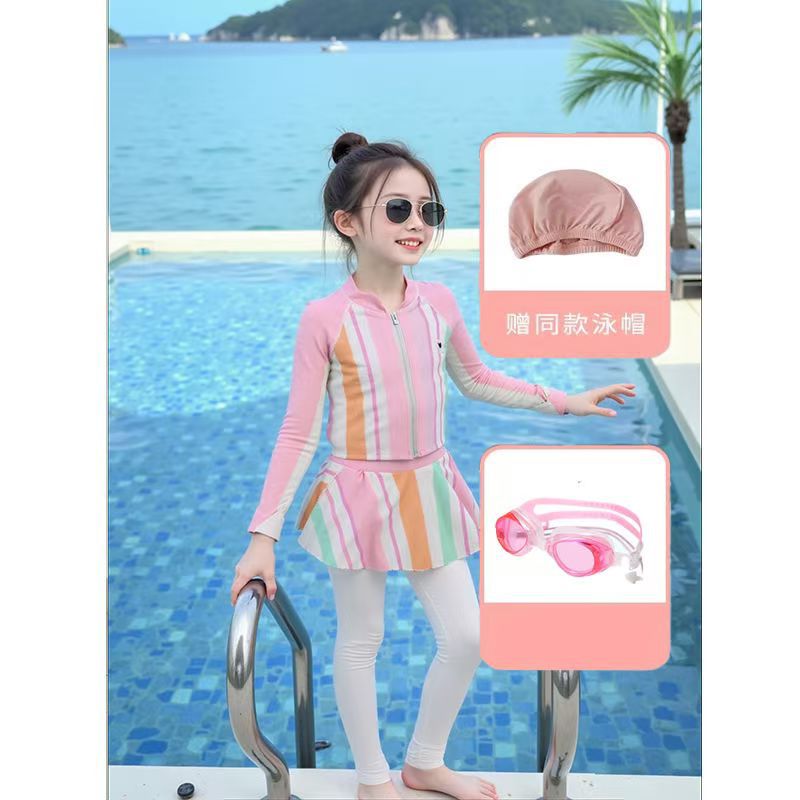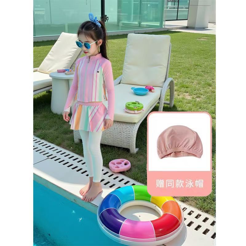 2025 새로운 여름 어린이 수영복 긴팔 소녀 스플릿 수영 바지 자외선 차단제 어린이 3 피스 슈트