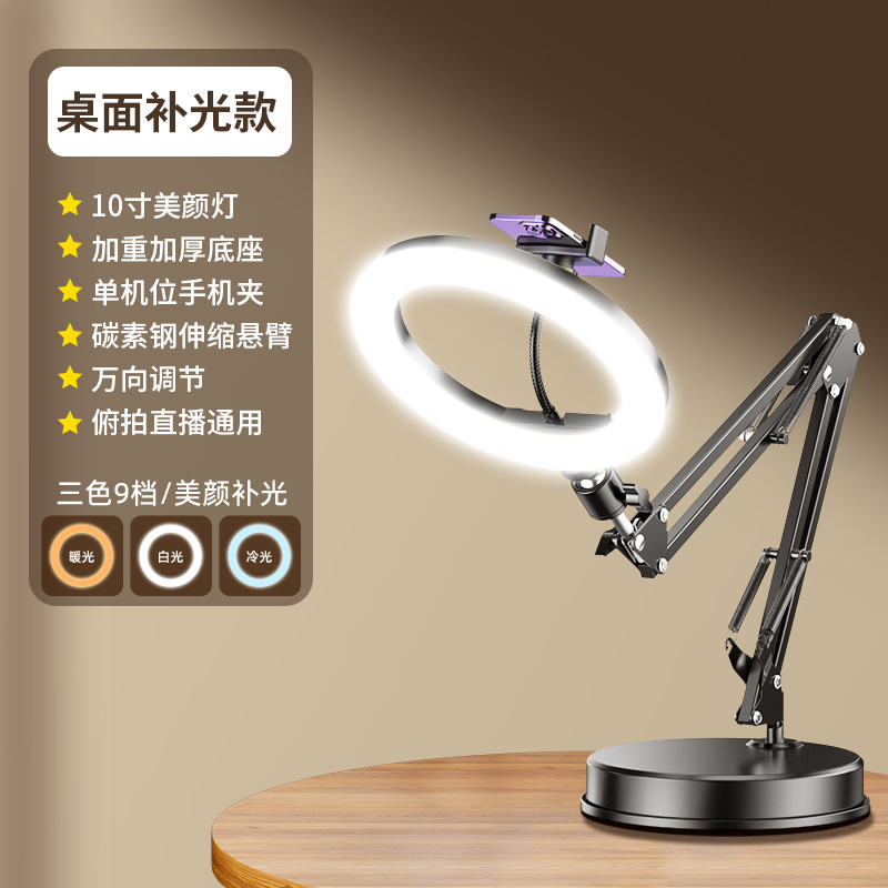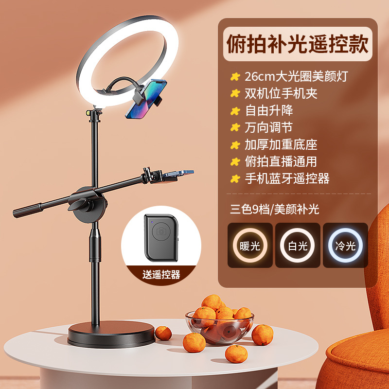 • 두꺼워지고 무거워진 베이스 [캔틸레버 오버헤드 촬영 브래킷] + 26cm 3색 뷰티 램프 + 블루투스 리모컨