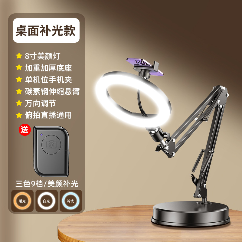 • 두꺼워지고 무거워진 베이스 [캔틸레버 오버헤드 촬영 브래킷] + 20cm 3색 뷰티 램프 + 블루투스 리모컨