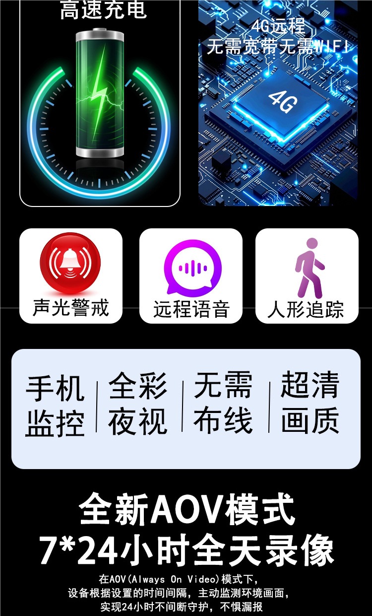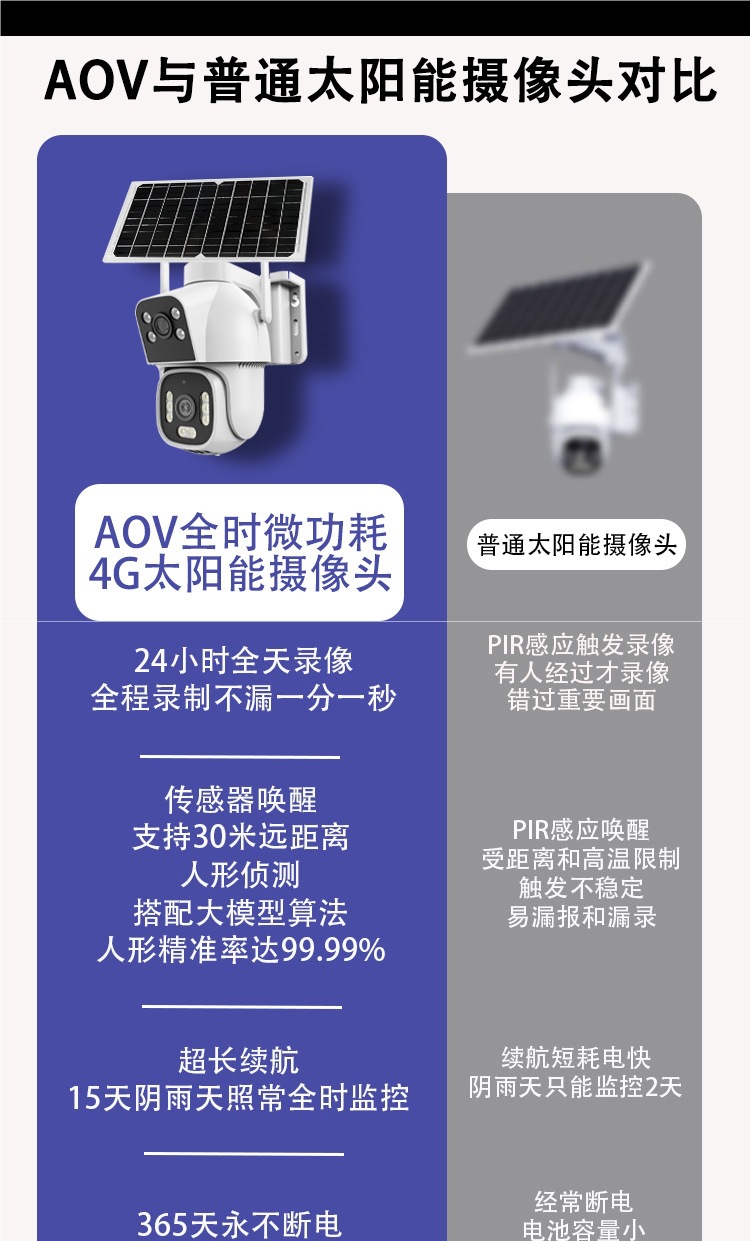 AOV 태양광 감시 카메라, 전기 없음, 네트워크 없음, 평생 트래픽 없음, 초선명, 방수, 야간 투시경