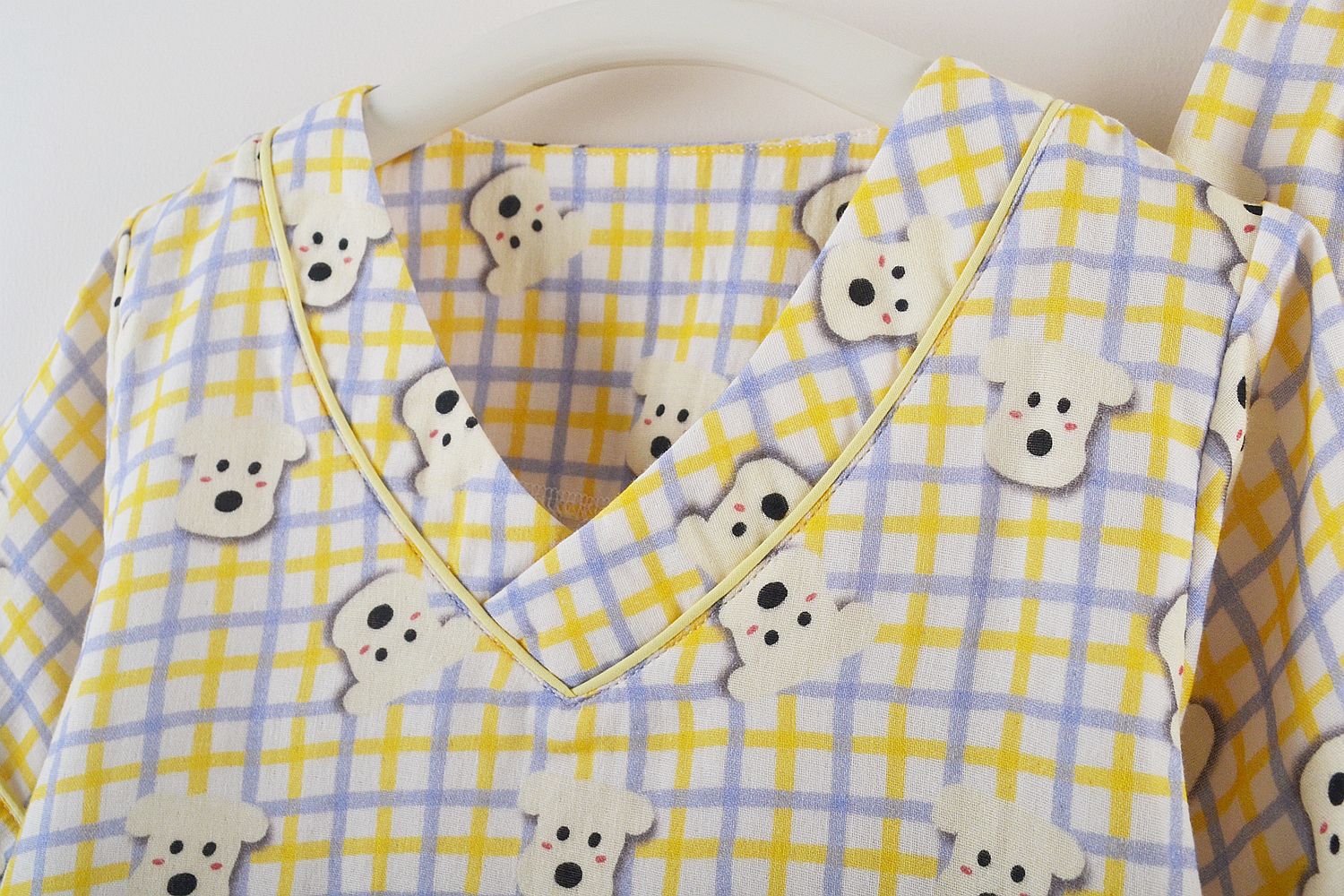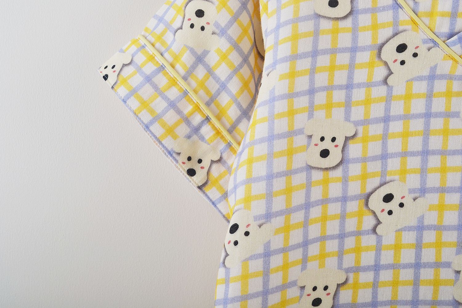 可爱格子小狗图案,整体颜色偏亮,不暗沉,
