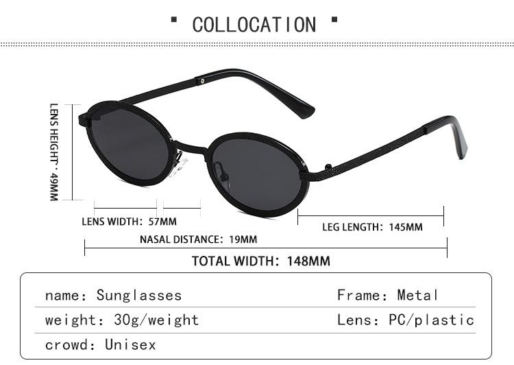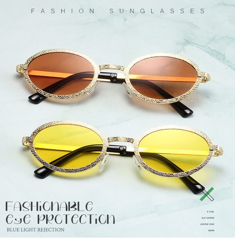 여성용 크로스보더 신제품 선글라스, 고급 금속 소형 프레임 타원형 패션 안경, 자외선 차단 유럽 및 미국 선글라스스토어 가기
