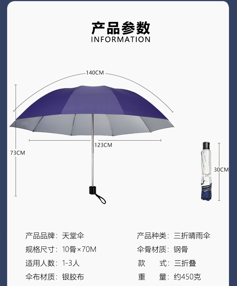 Yun Gongzi Paradise Umbrella 10k 초대형 3인용 우산 실버 플라스틱 70% off 써니 우산 파라솔 123cm 랜덤 싱글 핸들