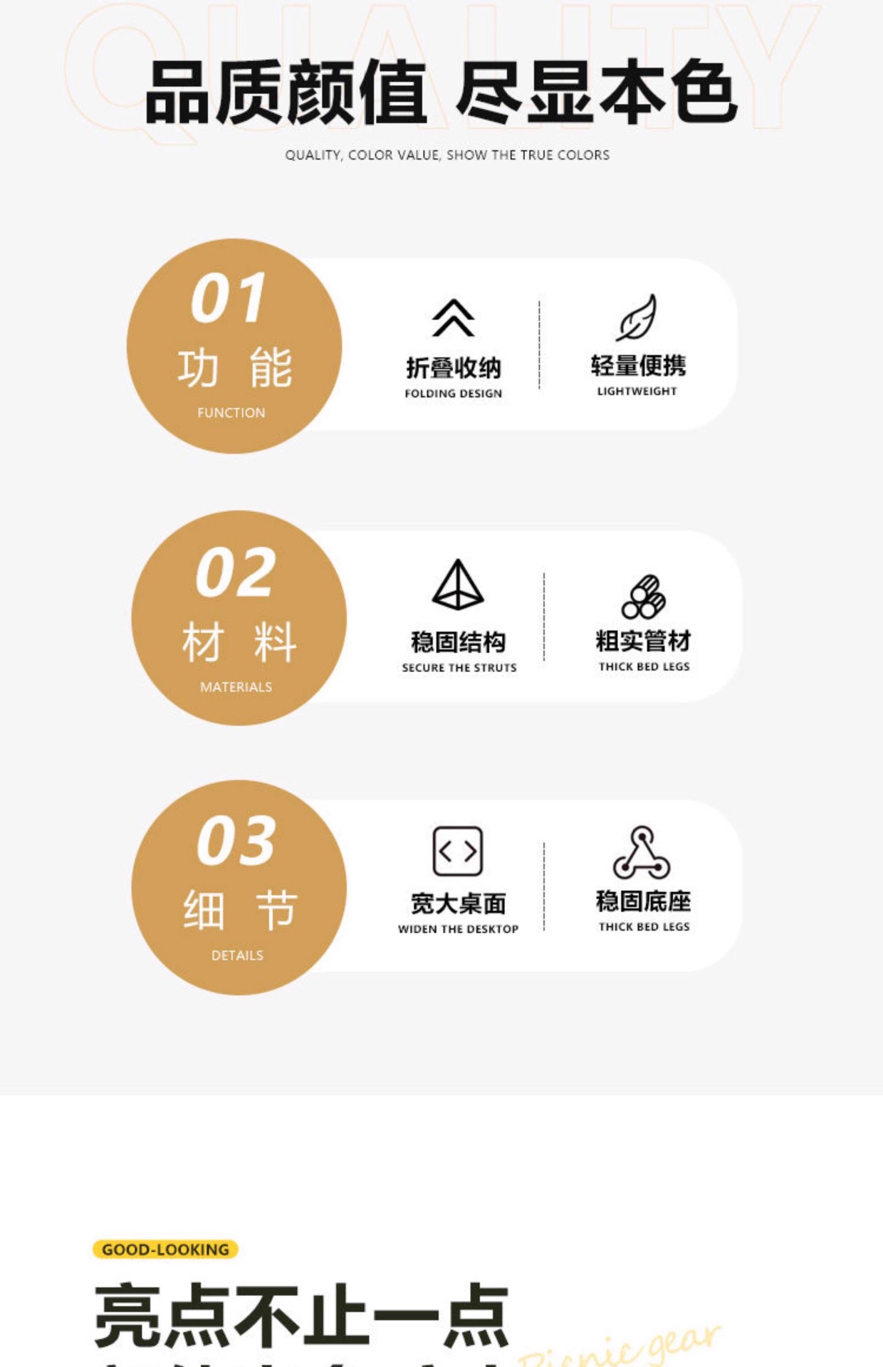 • [두꺼운 탄소강] 베이지 사각 테이블 53cm ★ 보관 가방 보내기