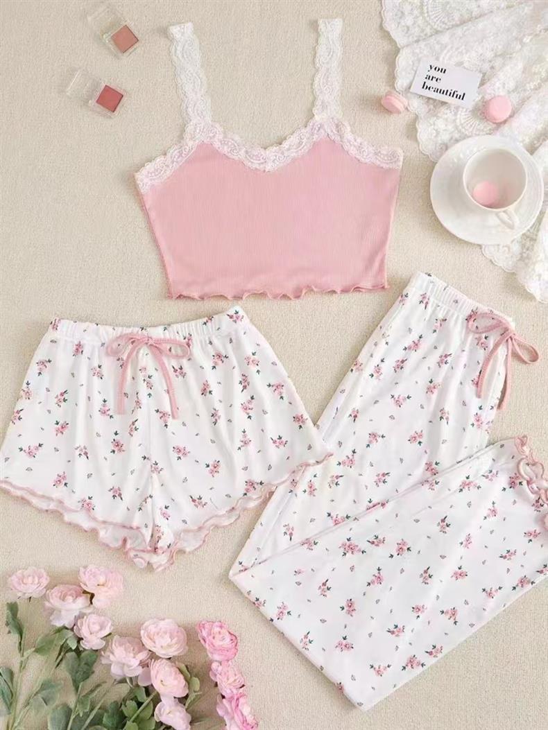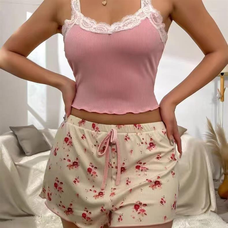 여성을위한 국경 간 여름 새로운 섹시한 레이스 캐미솔 잠옷 슬림 투피스 홈웨어