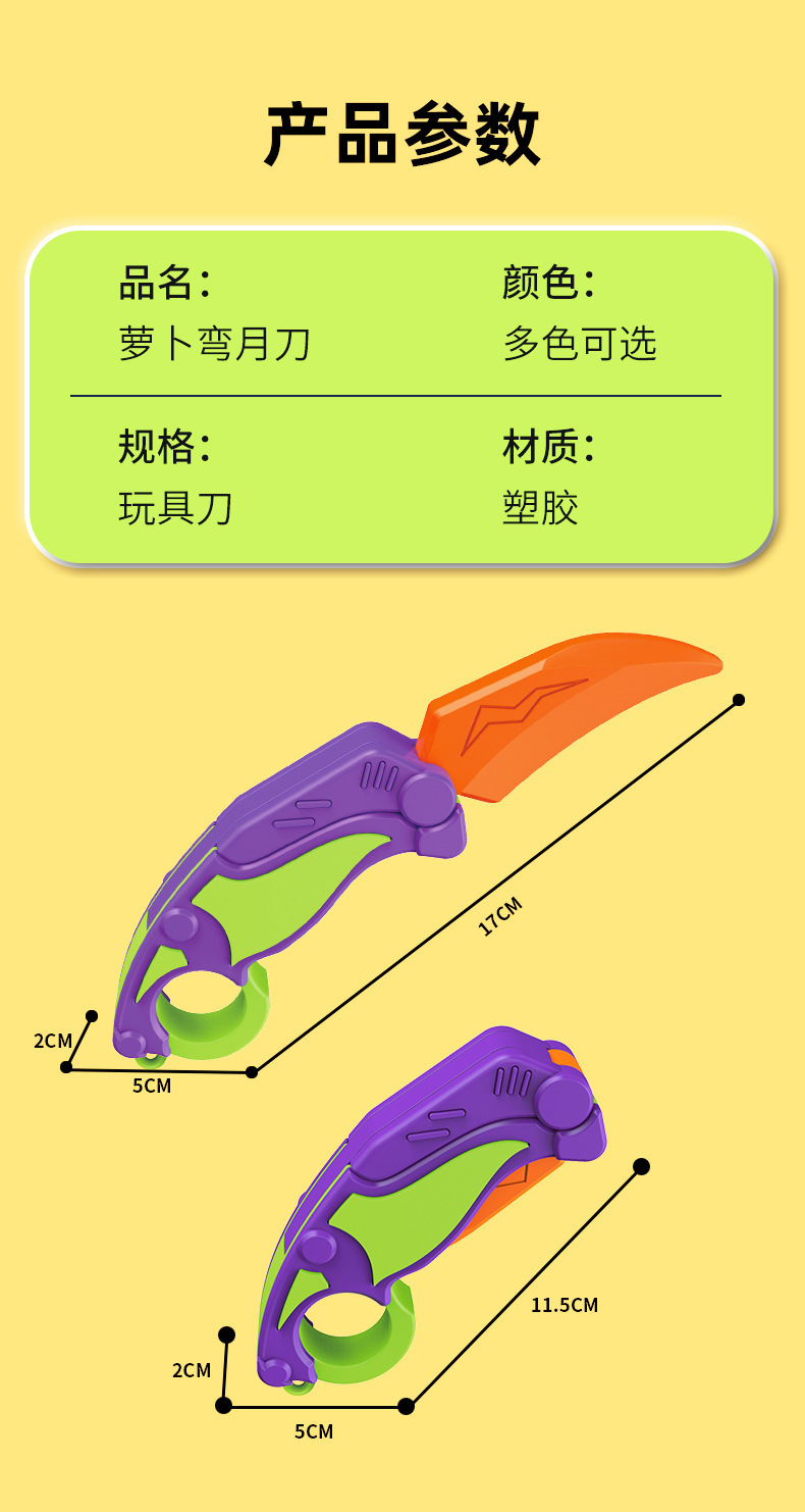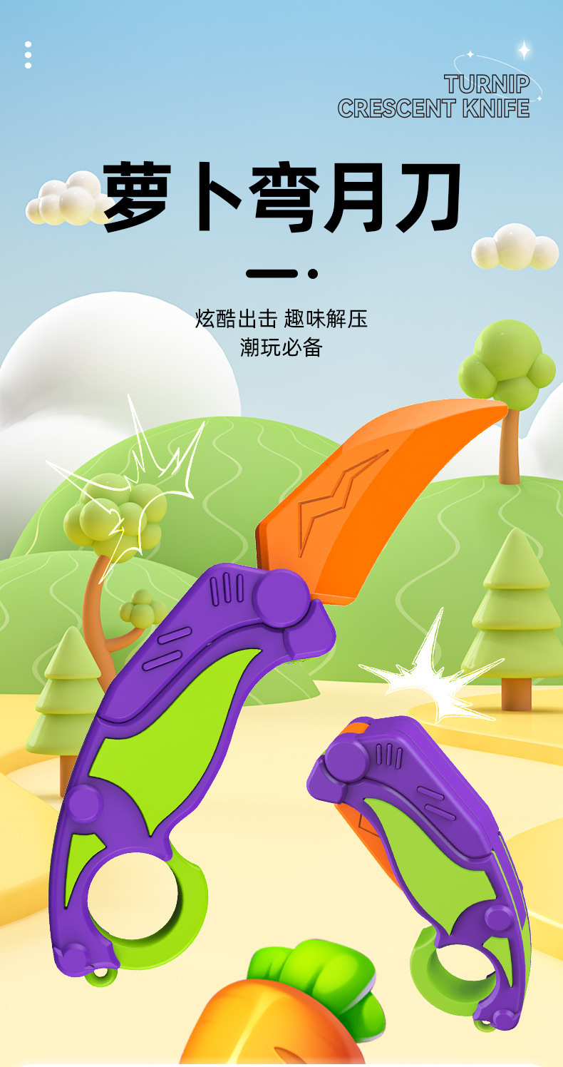 중력 당근칼 월름모양 모델 날 없는 감압 접이식 칼 안전 플라스틱 회전 장난감 도매 발사 장난감 도매