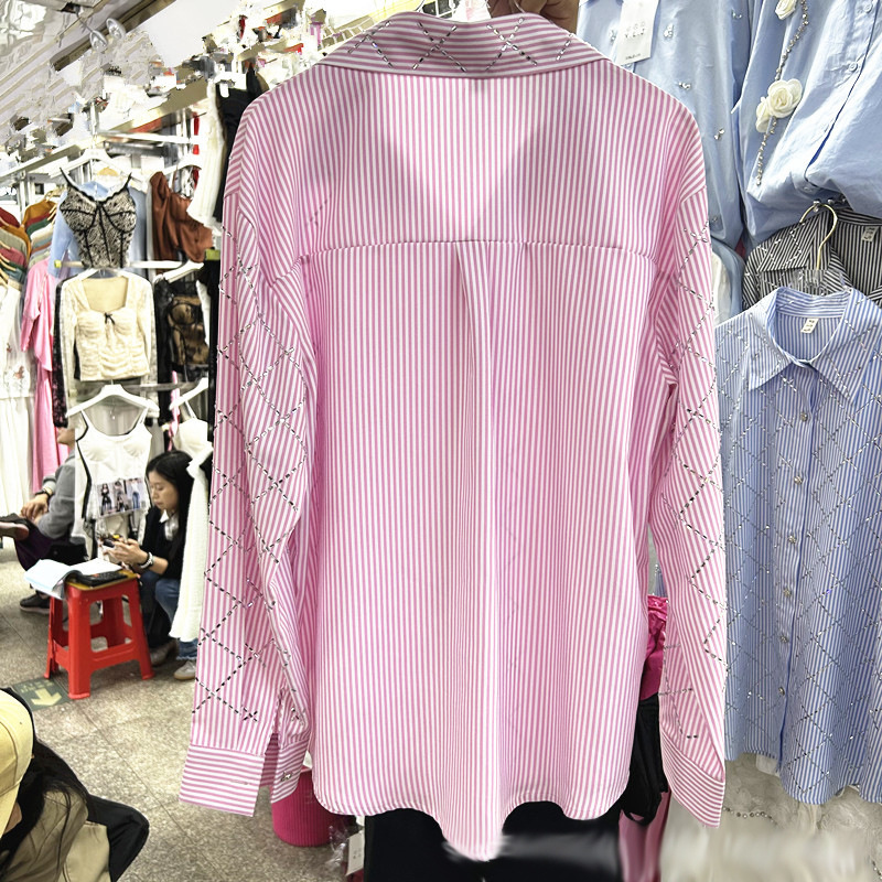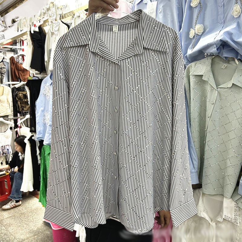 2025 새로운 여름 여성 프랑스 스타일 우아한 핫 다이아몬드 마름모 캐주얼 느슨한 얇은 긴팔 옷깃 셔츠스토어 가기