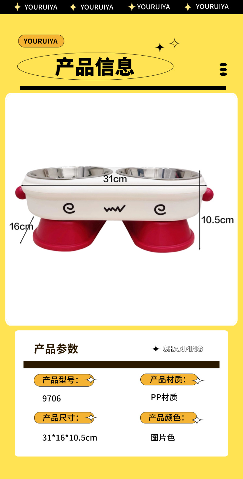 컬러박스 포장용 고급 강아지 그릇, 스테인리스 이중 그릇, 애완용품, 경추 보호 고양이 그릇, 식사용품 등 국경 간 전문 공급업체