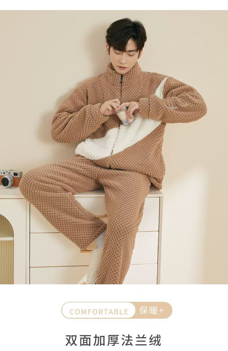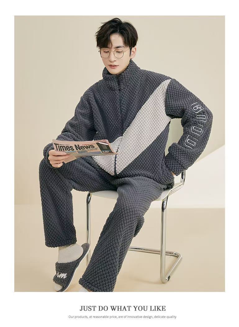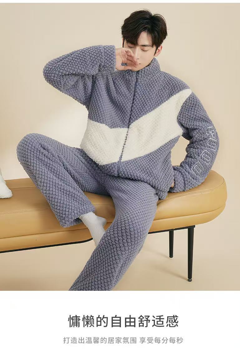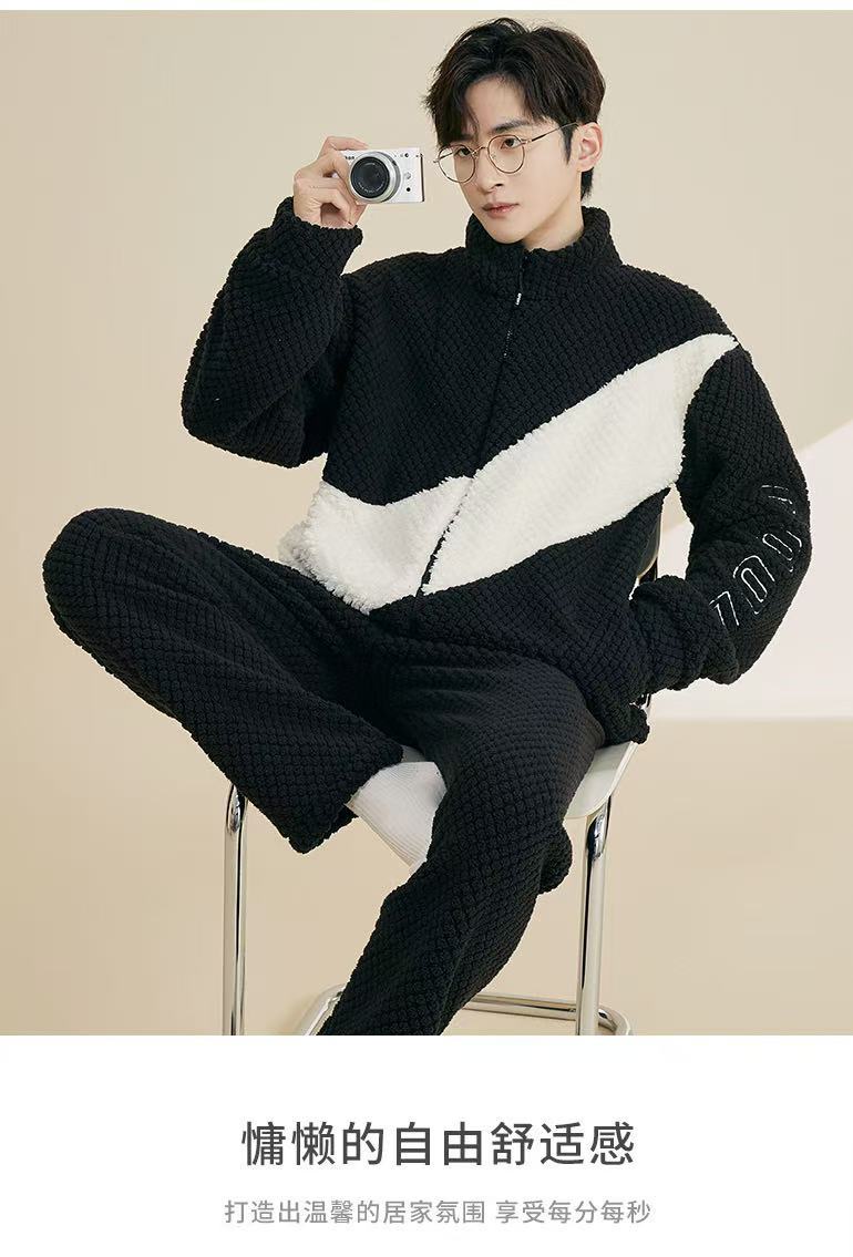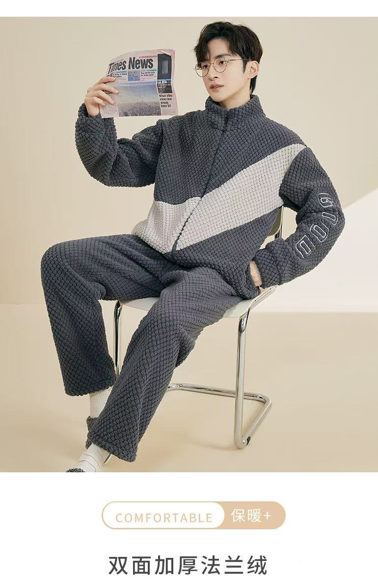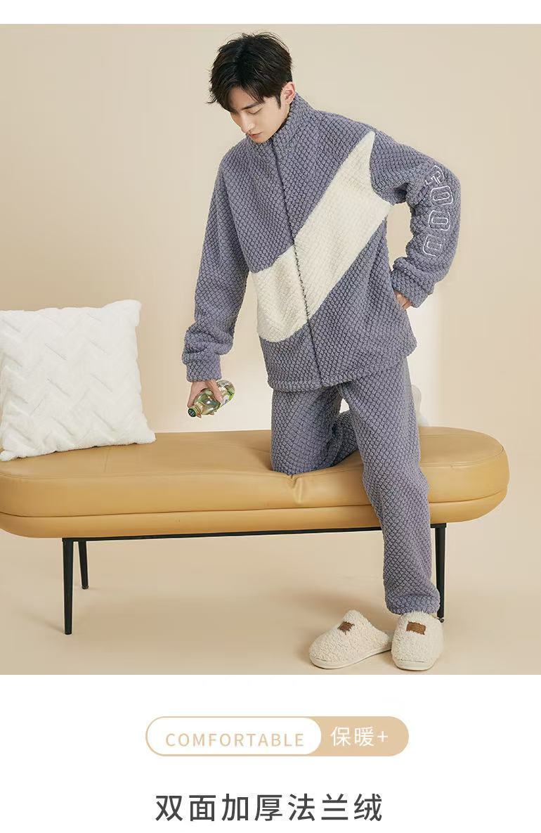 남성용 겨울 및 가을 스포츠 벨벳 두꺼운 따뜻한 잠옷, 지퍼 스탠드 칼라 산호 벨벳 가정복스토어 가기