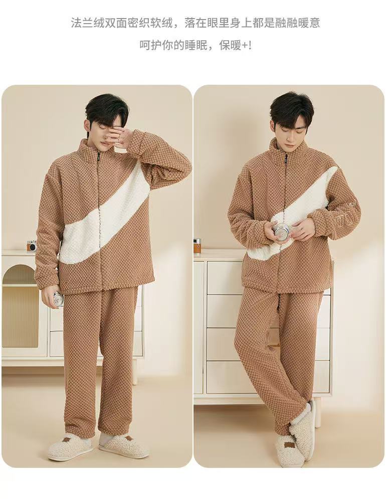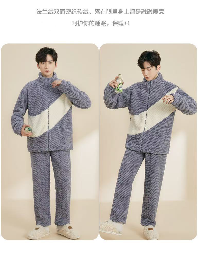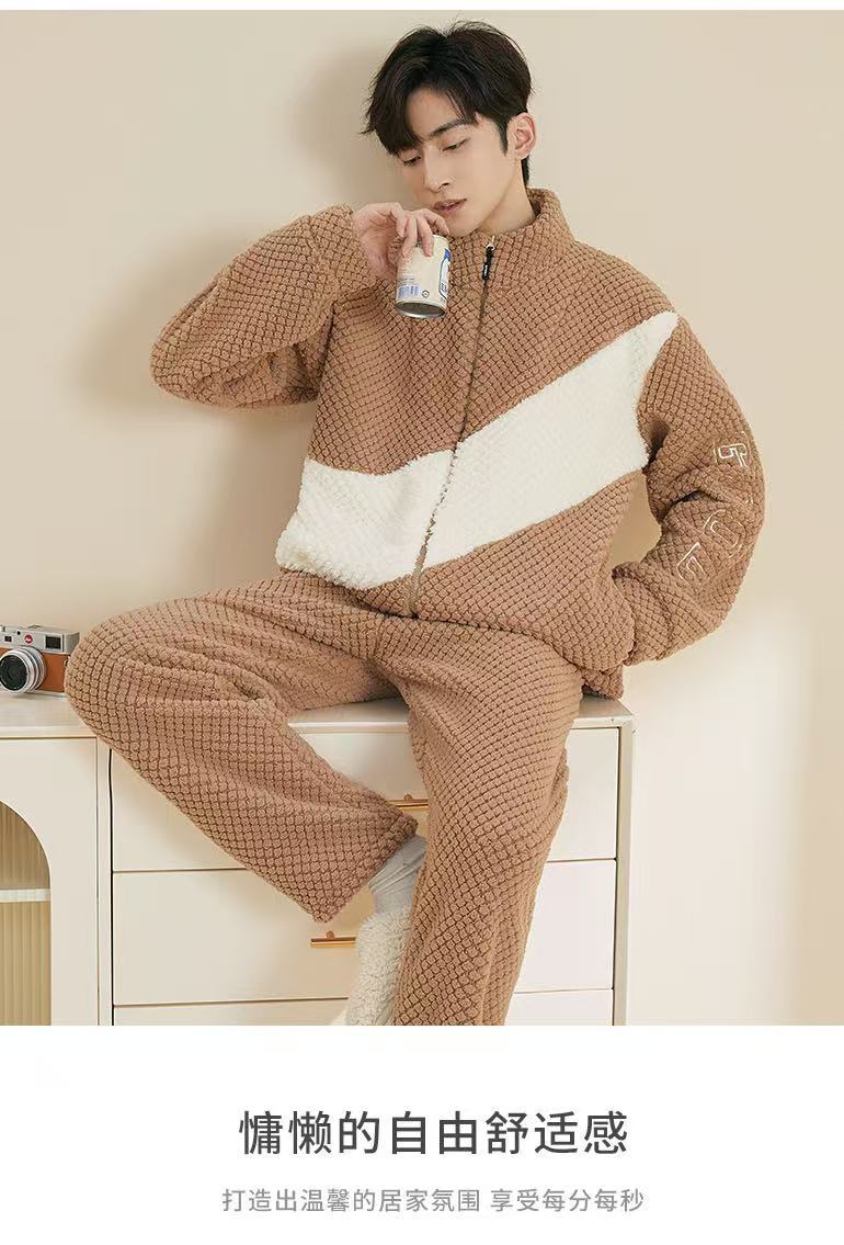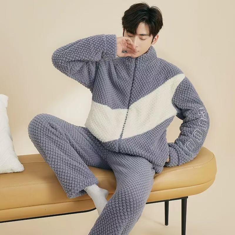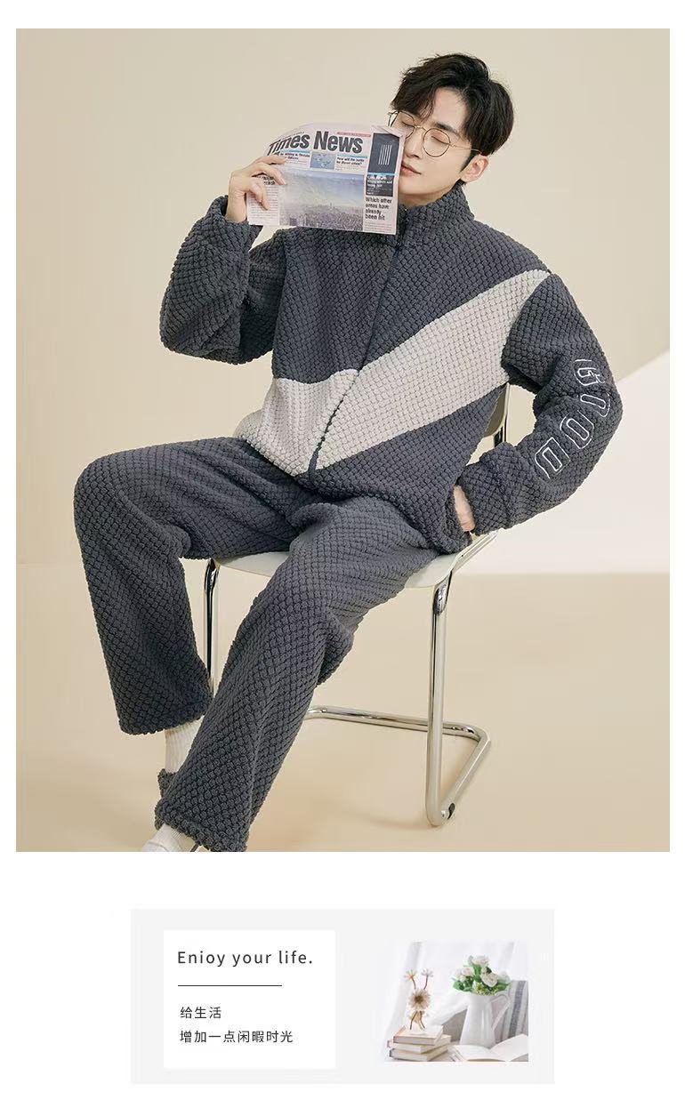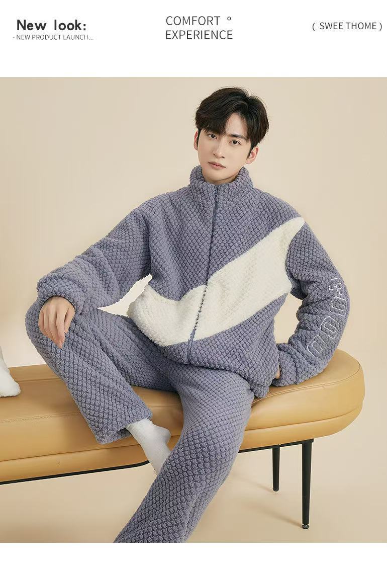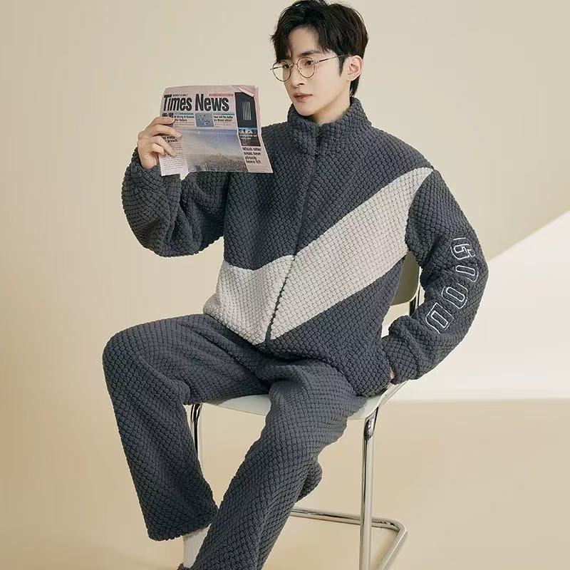 남성용 겨울 및 가을 스포츠 벨벳 두꺼운 따뜻한 잠옷, 지퍼 스탠드 칼라 산호 벨벳 가정복스토어 가기