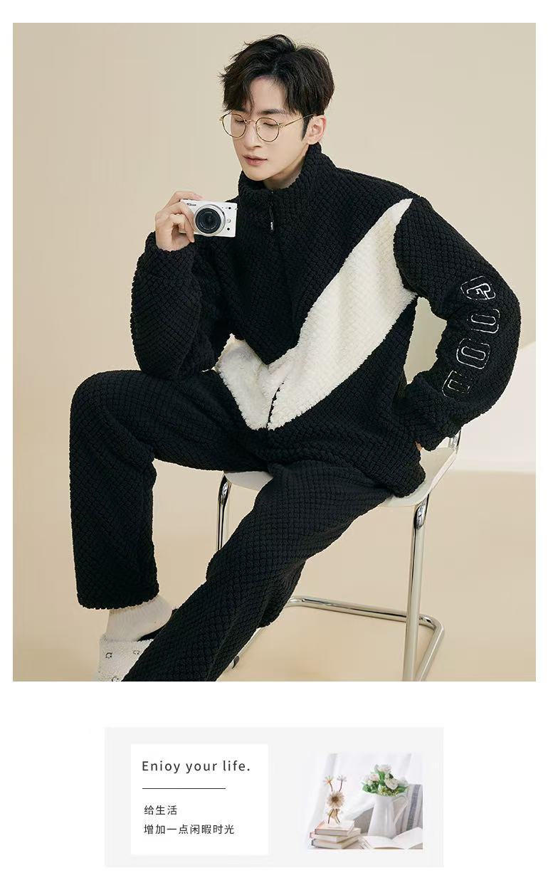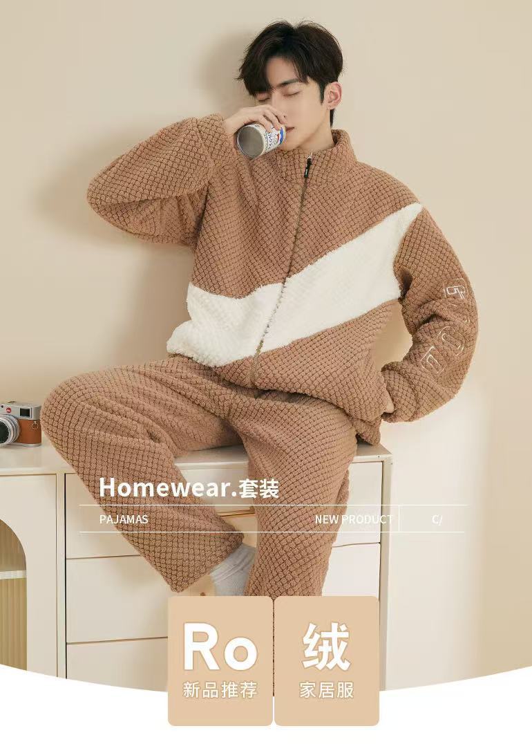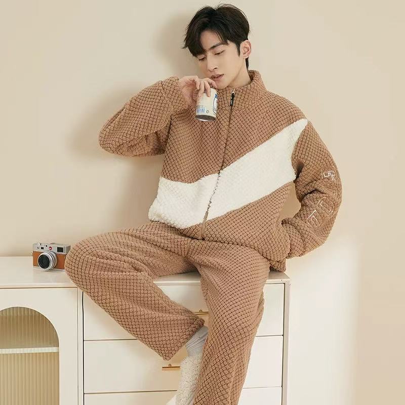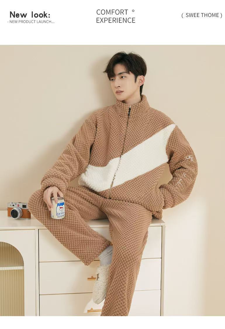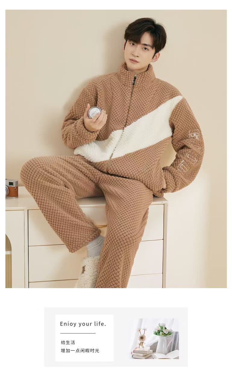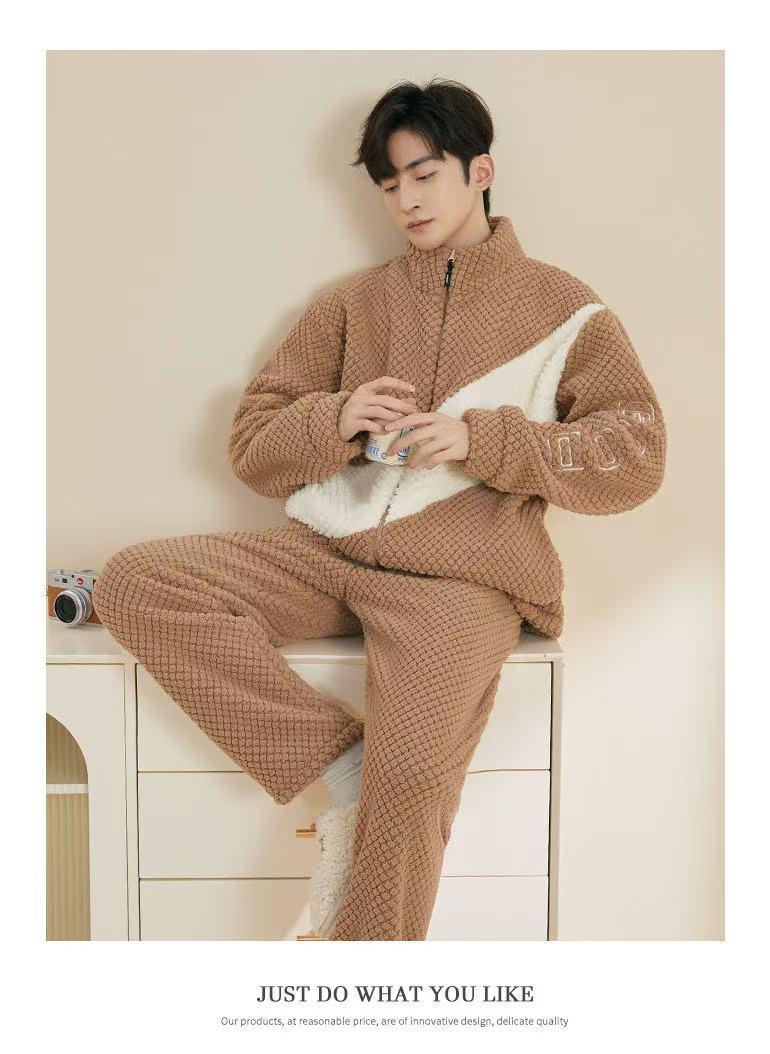 남성용 겨울 및 가을 스포츠 벨벳 두꺼운 따뜻한 잠옷, 지퍼 스탠드 칼라 산호 벨벳 가정복스토어 가기