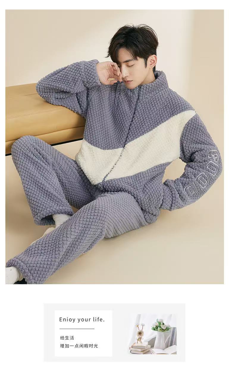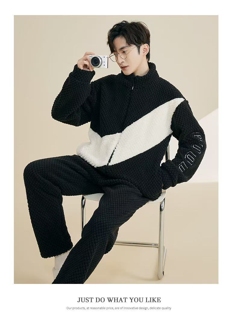 남성용 겨울 및 가을 스포츠 벨벳 두꺼운 따뜻한 잠옷, 지퍼 스탠드 칼라 산호 벨벳 가정복