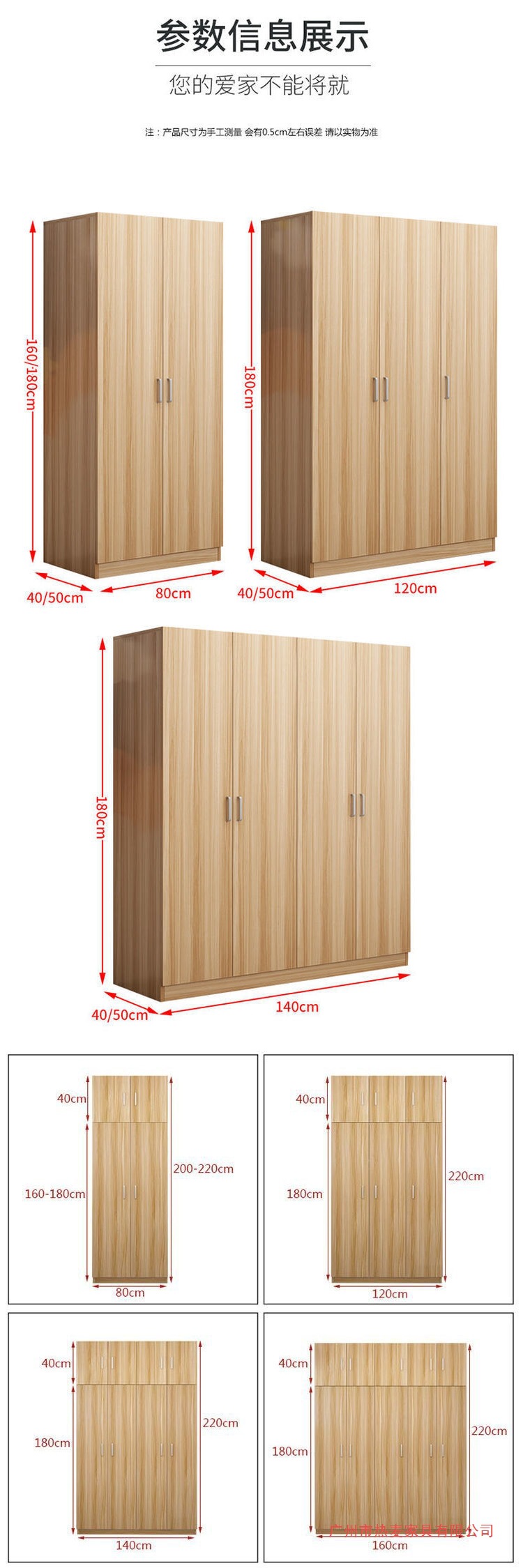 • 문 3개 높이 220 * 너비 120 * 깊이 50 + 상단 캐비닛
