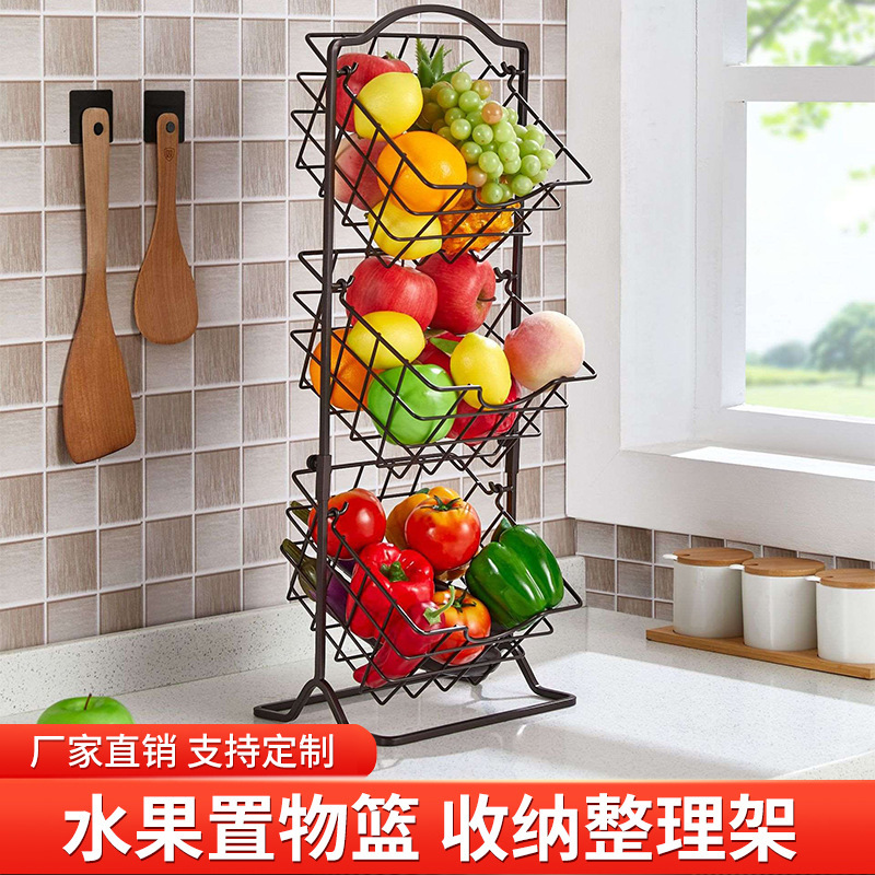 북유럽 철 과일 보관 바구니 다기능 2층 및 3층 보관 랙 욕실 세면 용품 및 화장품 보관 및 정리 랙스토어 가기