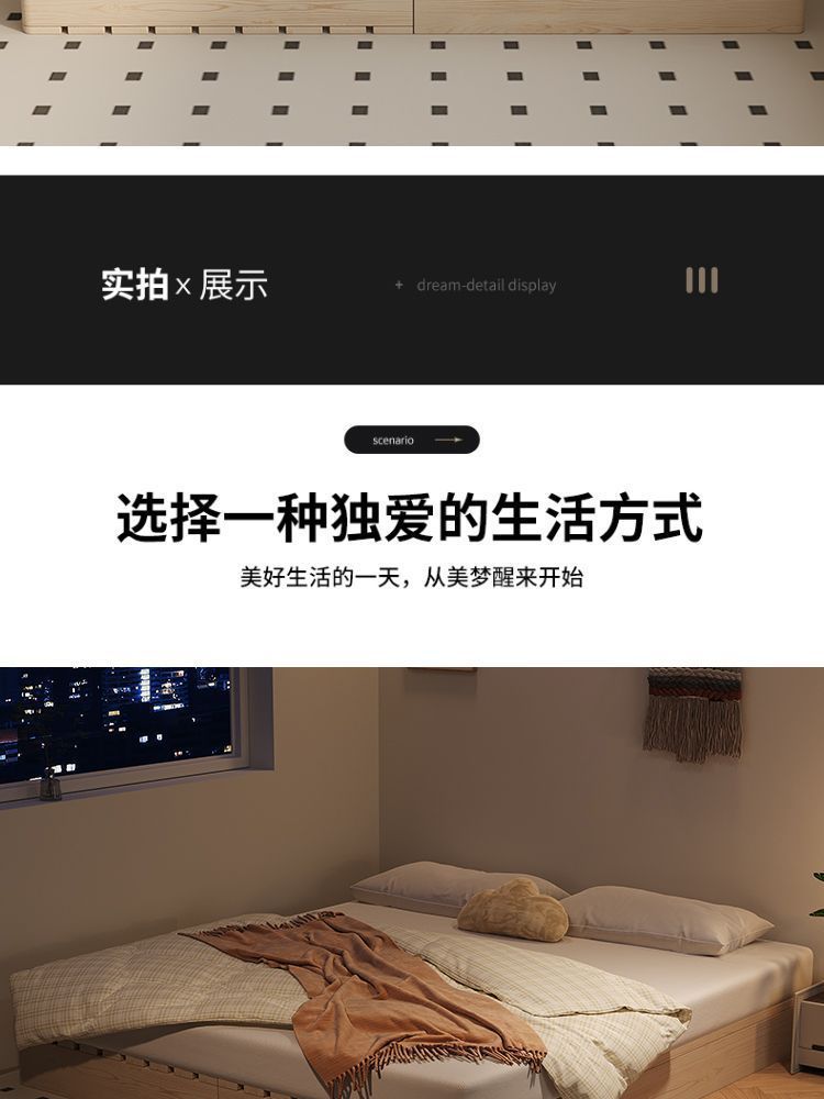 B&B 침대판, 바닥, 바닥 프레임 침대, 낮은 침대, 침대 옆 원목 다다미 침대, 일본식 선반이 없는 임대실