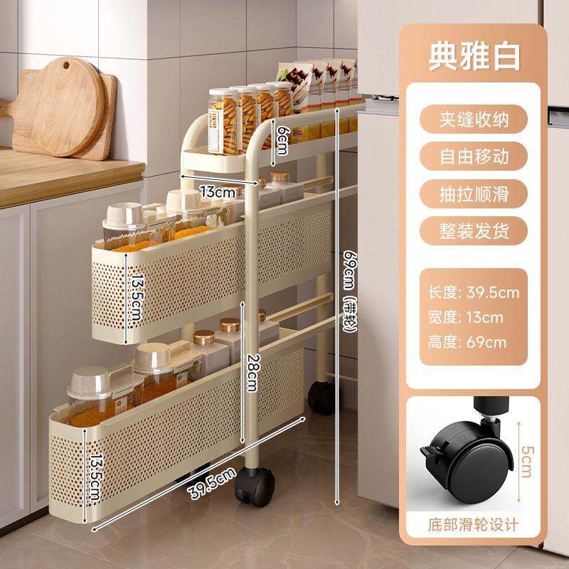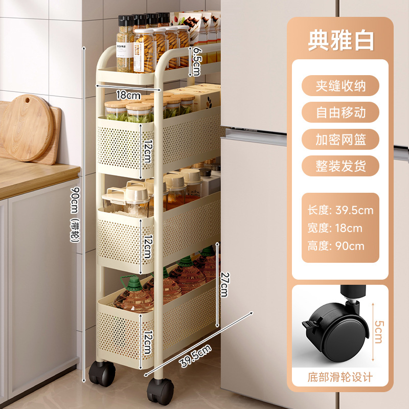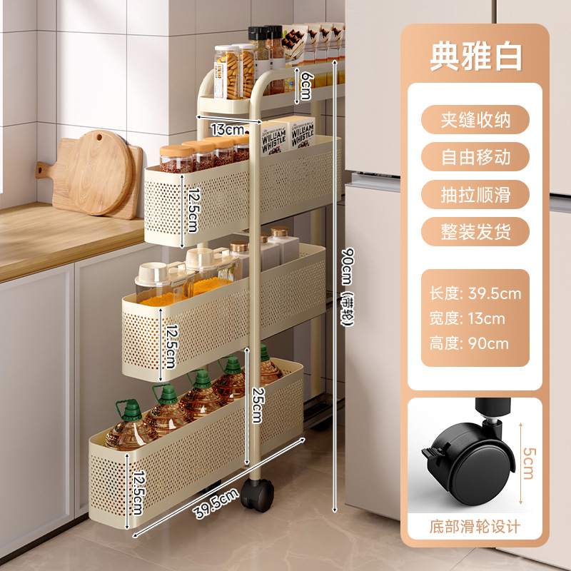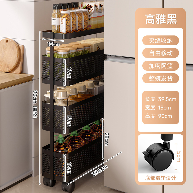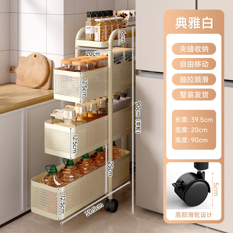 주방 수납 선반 트롤리 바닥에 놓인 다층 조미료 병 과일 및 야채 수납 선반 이동식 좁은 틈새 수납 선반