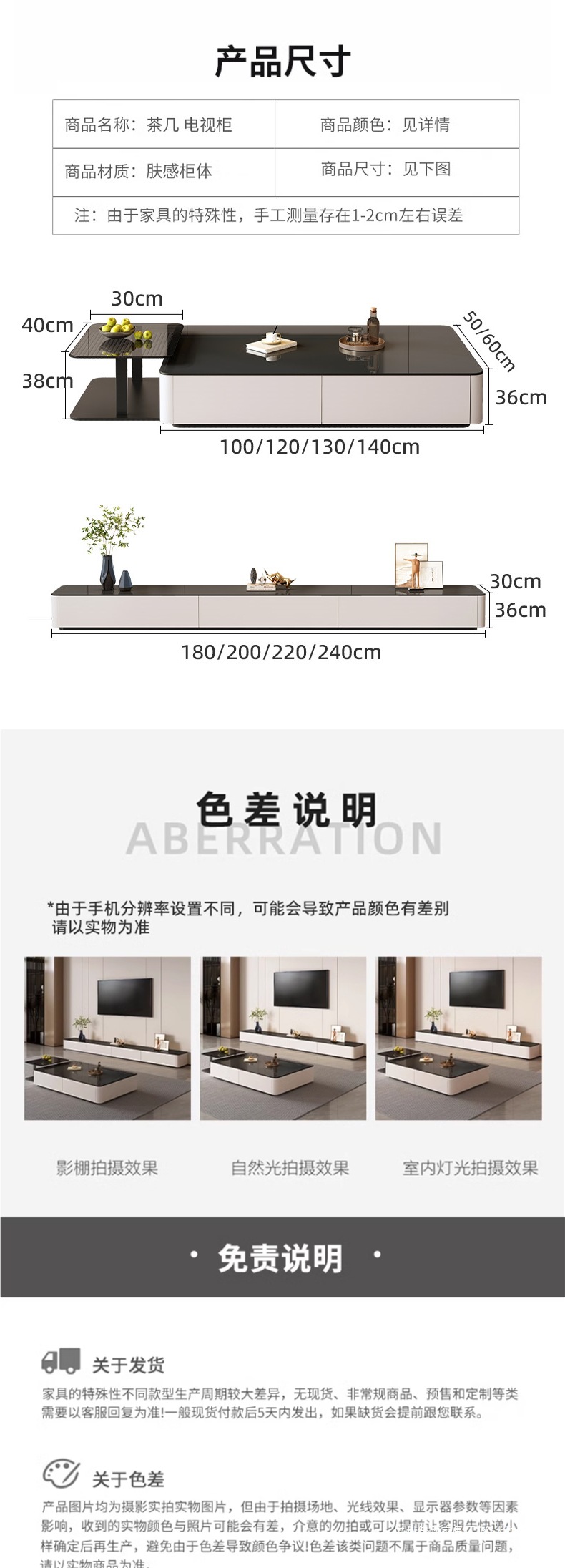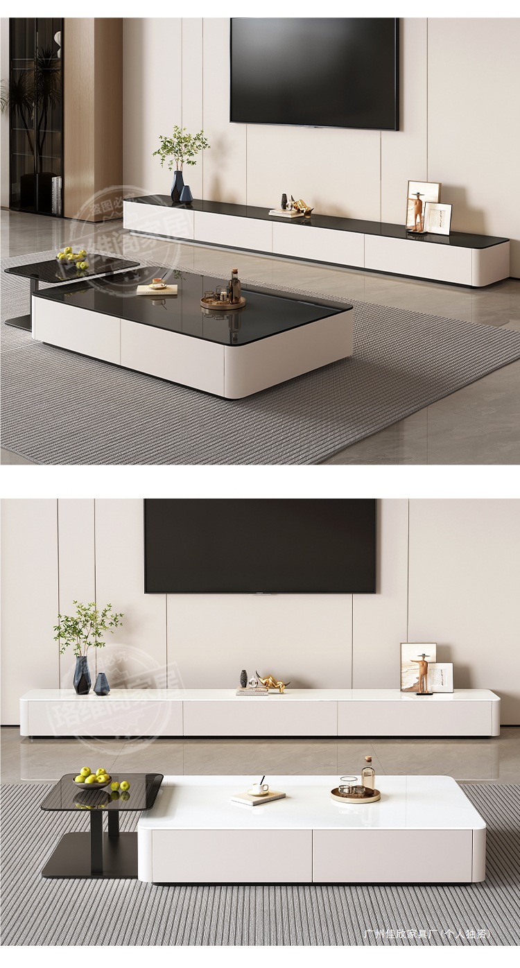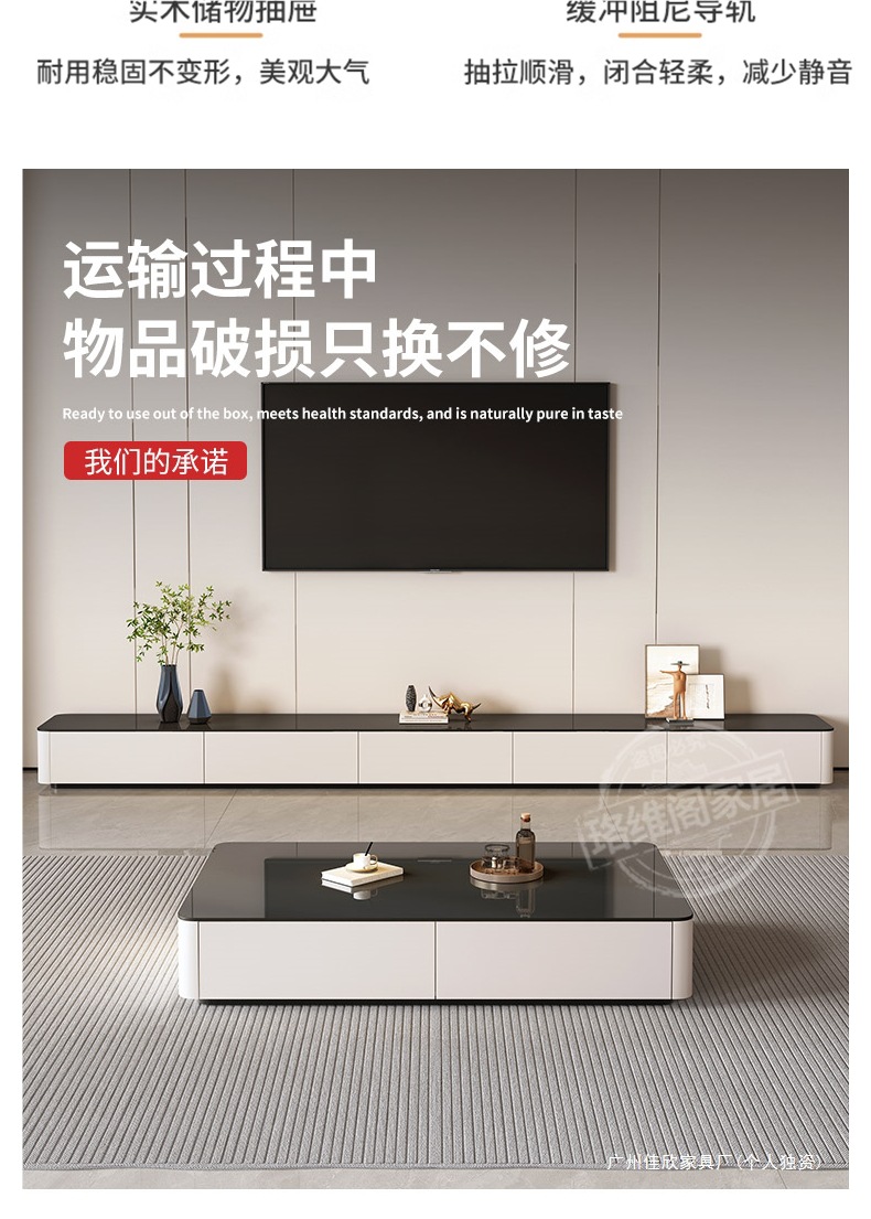 • [설치가 필요 없는 싱글 TV 캐비닛] 220cm 하오예 블랙 + 아이보리 화이트 캐비닛 TV 캐비닛