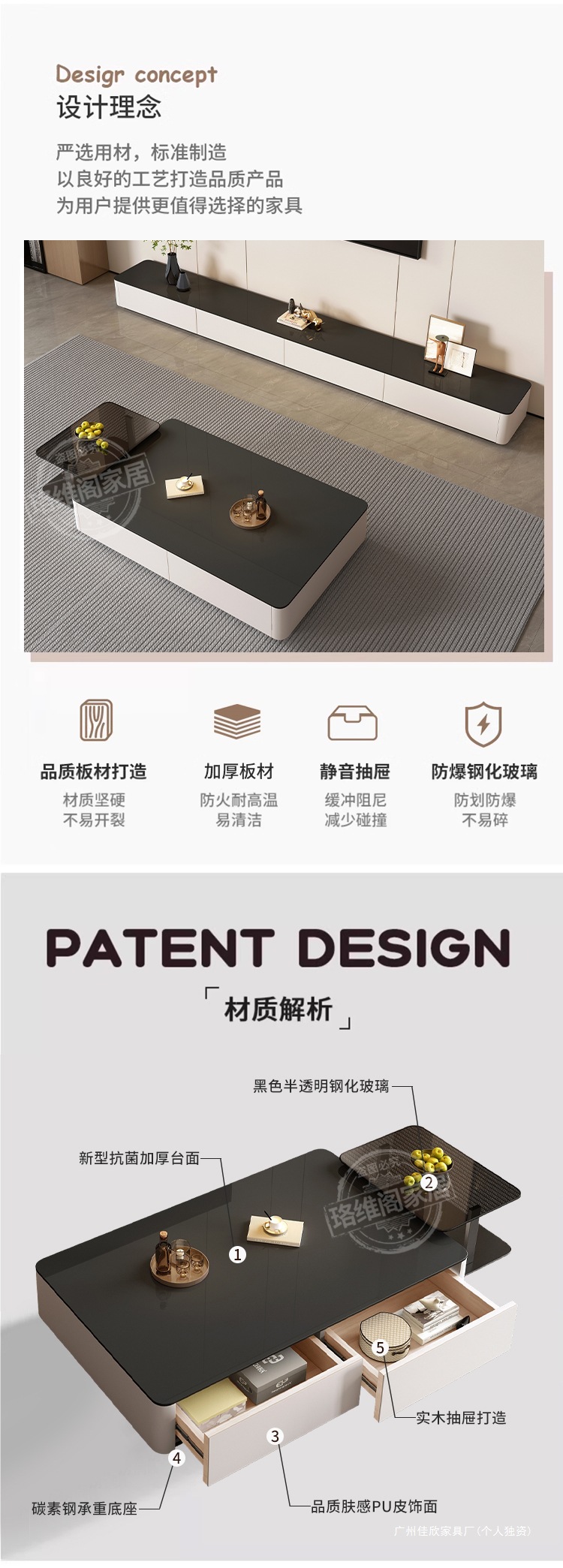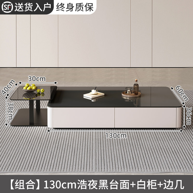 • [설치가 필요 없는 싱글 커피 테이블] 130cm 하오예 블랙 + 아이보리 화이트 캐비닛