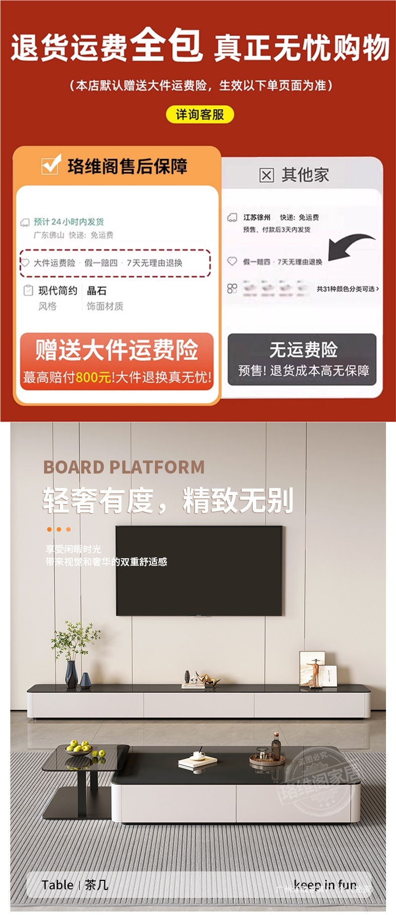 • [설치가 필요 없는 싱글 TV 캐비닛] 240cm 하오예 블랙 + 아이보리 화이트 캐비닛 TV 캐비닛