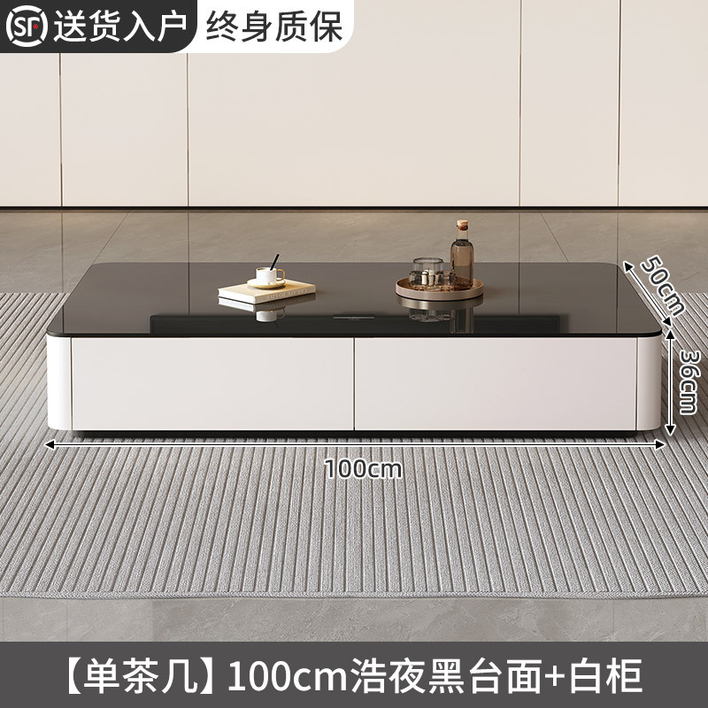 • [설치가 필요 없는 싱글 커피 테이블] 100cm 하오예 블랙 + 아이보리 화이트 캐비닛