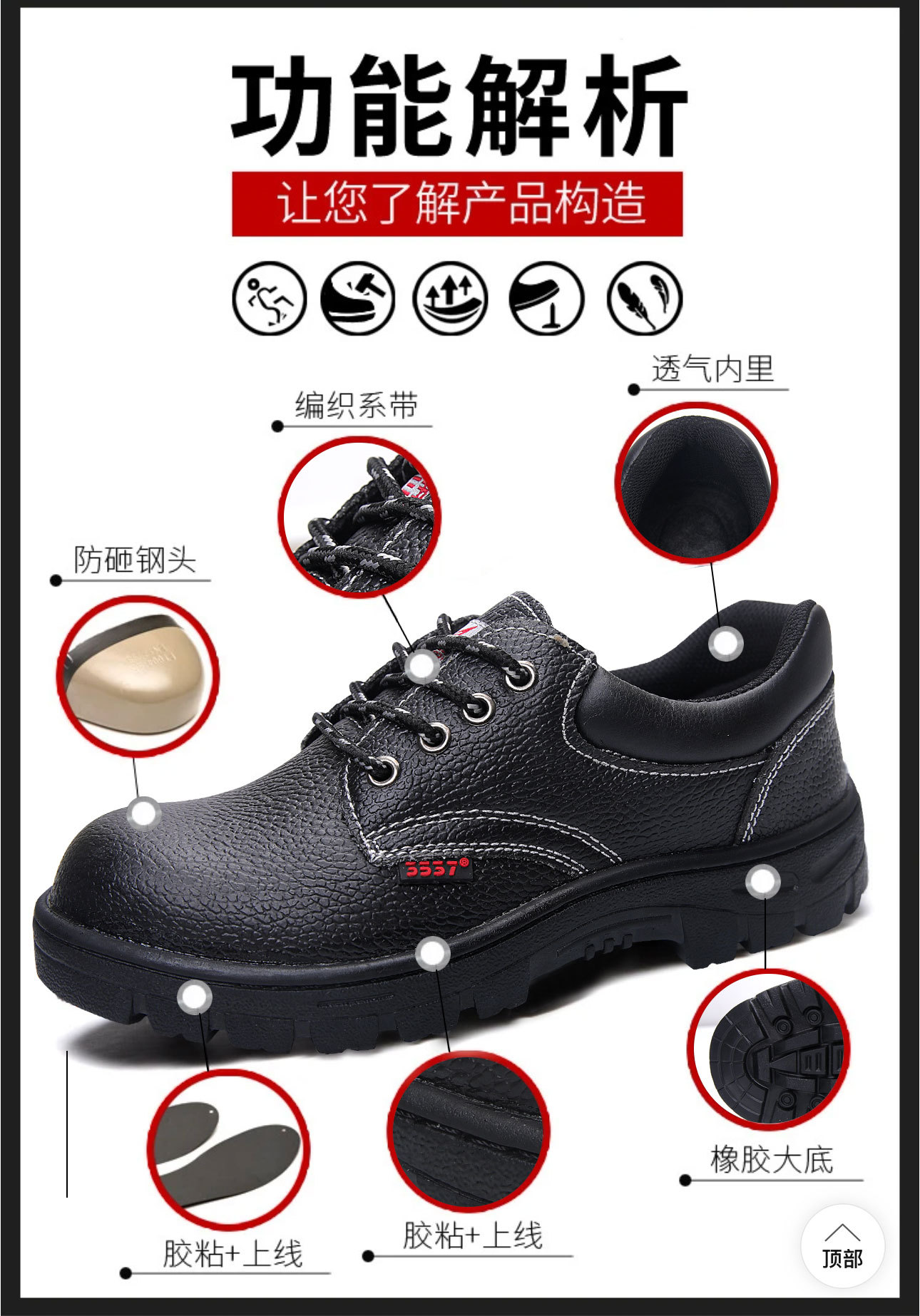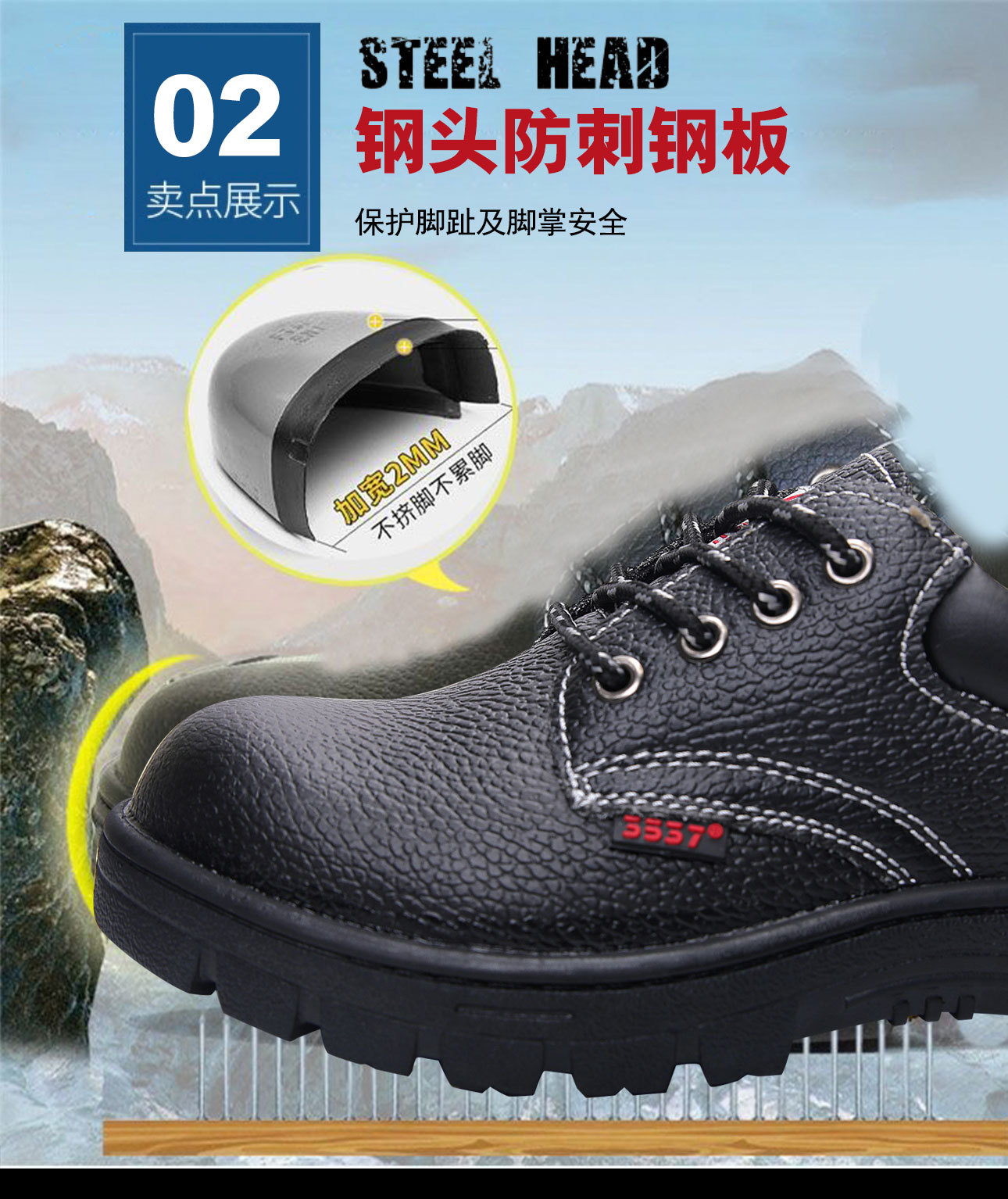 3537 정품 노동 보호 신발, 스매싱 방지, 경량 강철 발가락 캡, 천공 방지, 통기성, 미끄럼 방지, 내마모성, 양각 소가죽 안전화스토어 가기