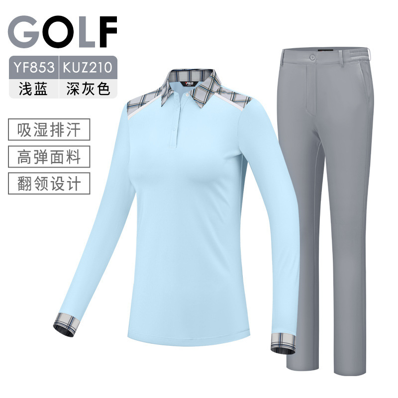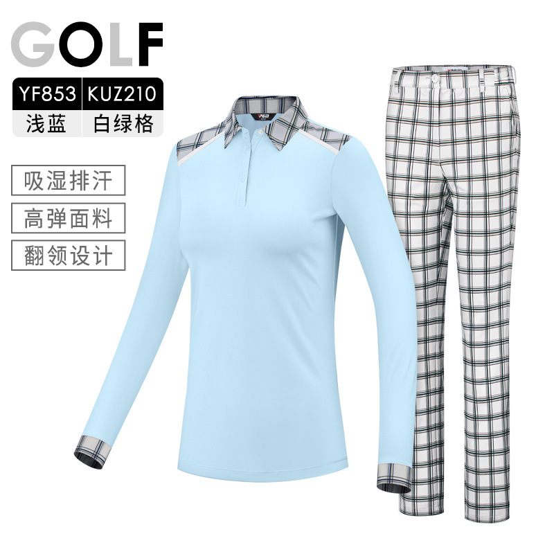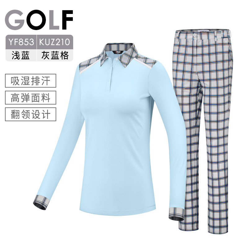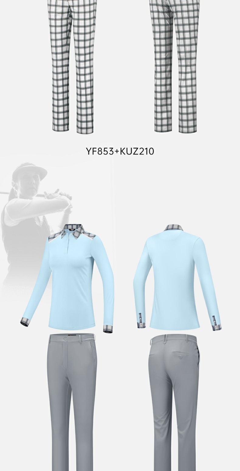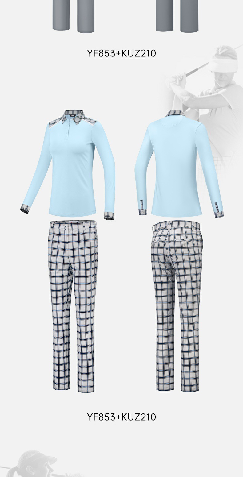 • [하늘색 상의+회색 체크팬츠] 여성 캐디슈트 YF853+KUZ210