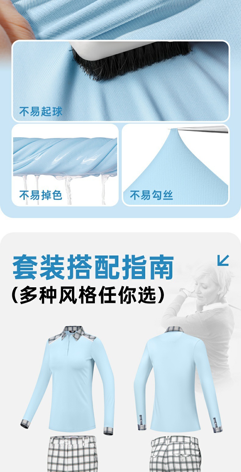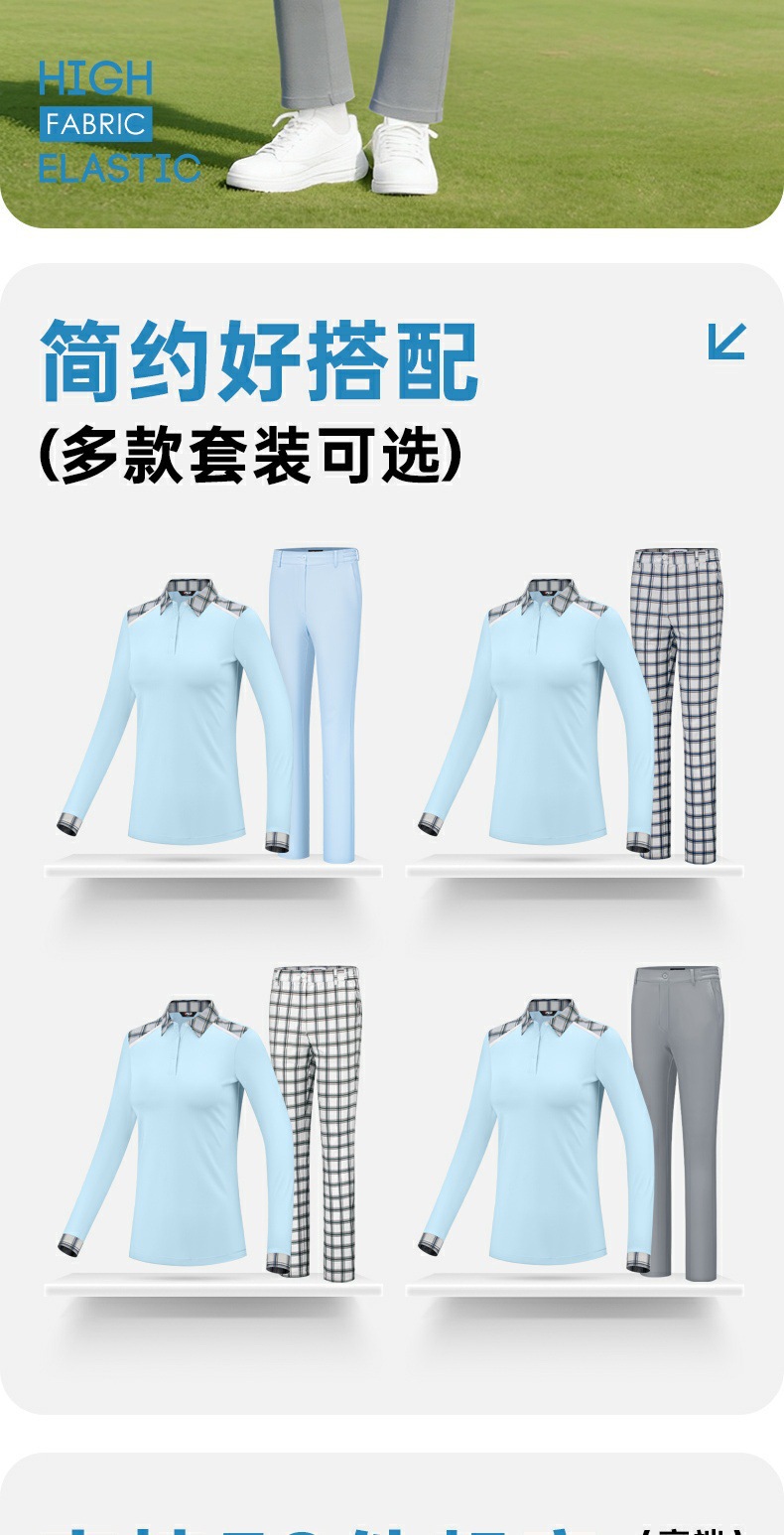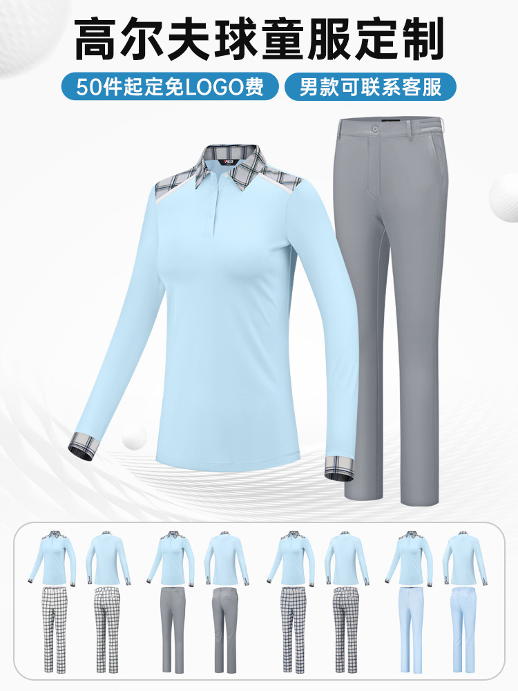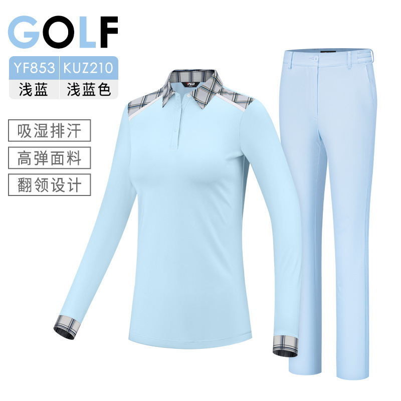 • [하늘색 상의+회색 체크팬츠] 여성 캐디슈트 YF853+KUZ210