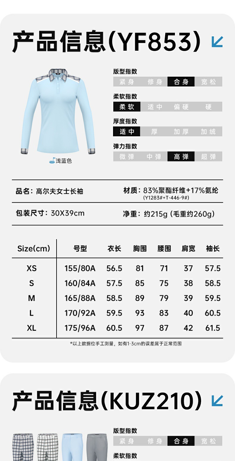 • [하늘색 상의+하늘색 바지] 여성 캐디슈트 YF853+KUZ210
