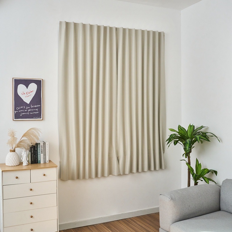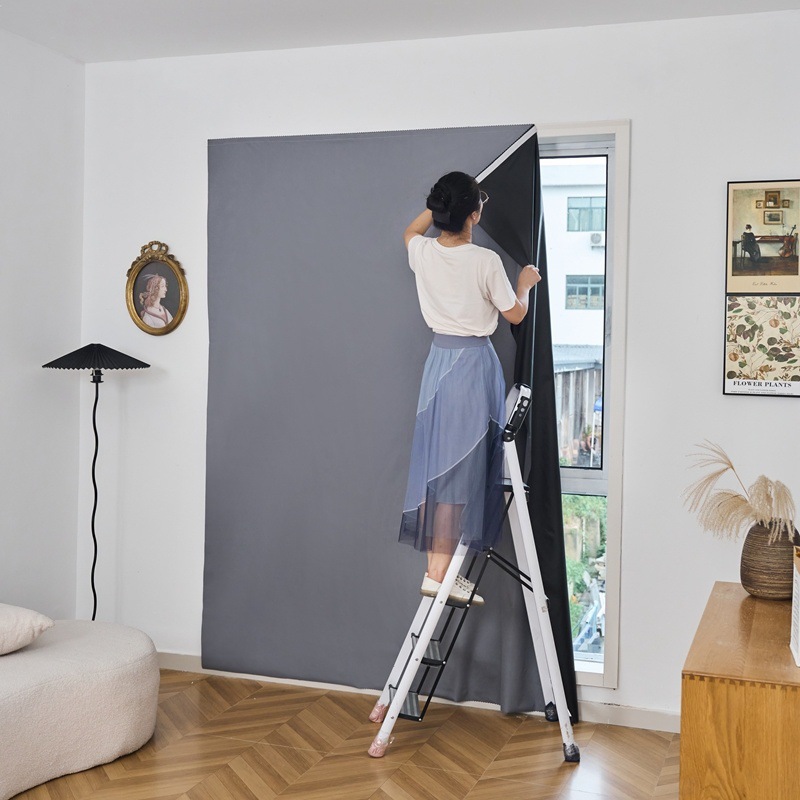침실의 돌출창과 작은 창문을 설치할 수 있는 펀치 없는 전면 차광 임대 주택 커튼 단열 커튼 간단한 자체 접착식