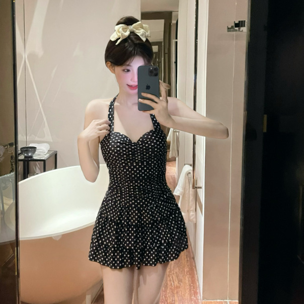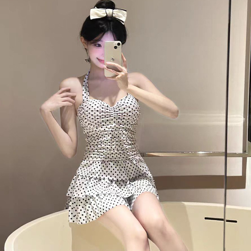 2025년 신형 원피스 스커트 스타일 폴카 도트 살찐 소녀 수영복, 여성 보수적 슬리밍, 살 커버, 섹시한 큰 가슴 푸쉬업
