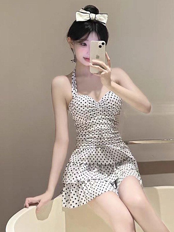 2025년 신형 원피스 스커트 스타일 폴카 도트 살찐 소녀 수영복, 여성 보수적 슬리밍, 살 커버, 섹시한 큰 가슴 푸쉬업스토어 가기