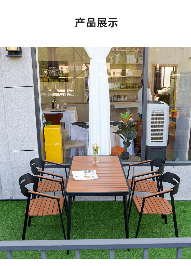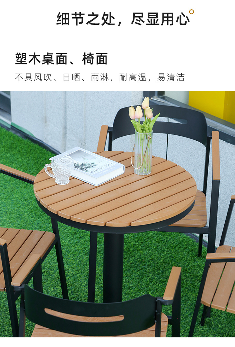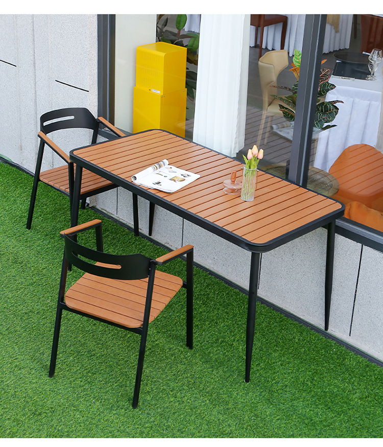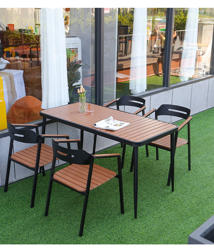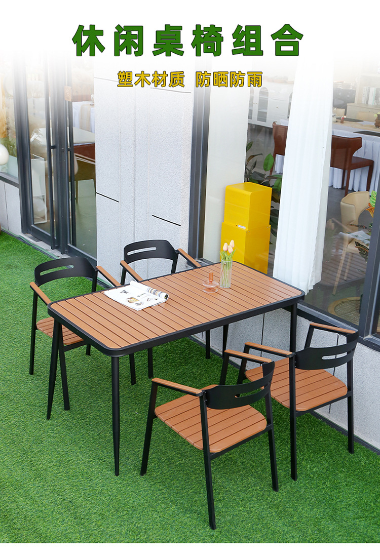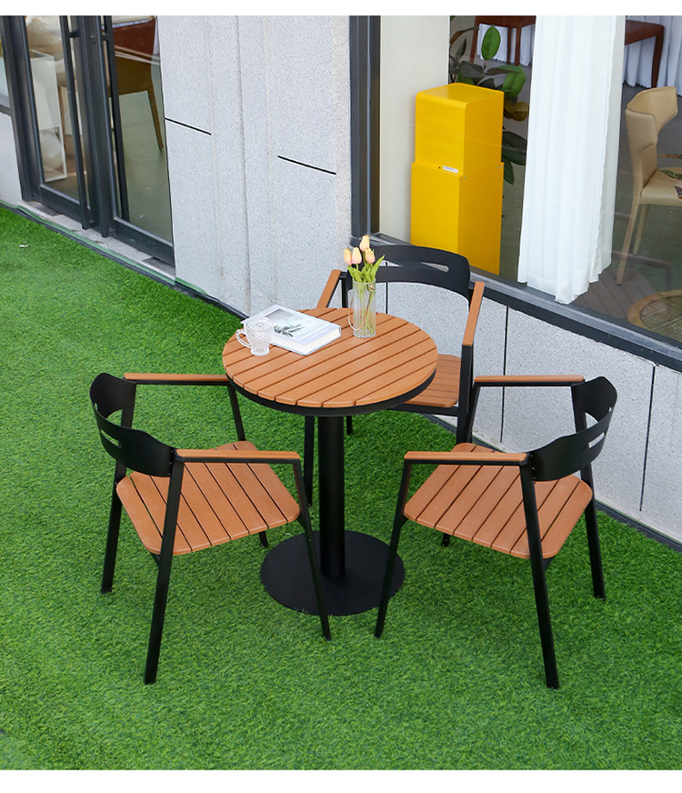 야외 테이블과 의자, 안뜰 정원, 야외 플라스틱 목재 레저 밀크티 숍 테라스, 쇼핑몰 카페 야외 테이블과 의자 조합