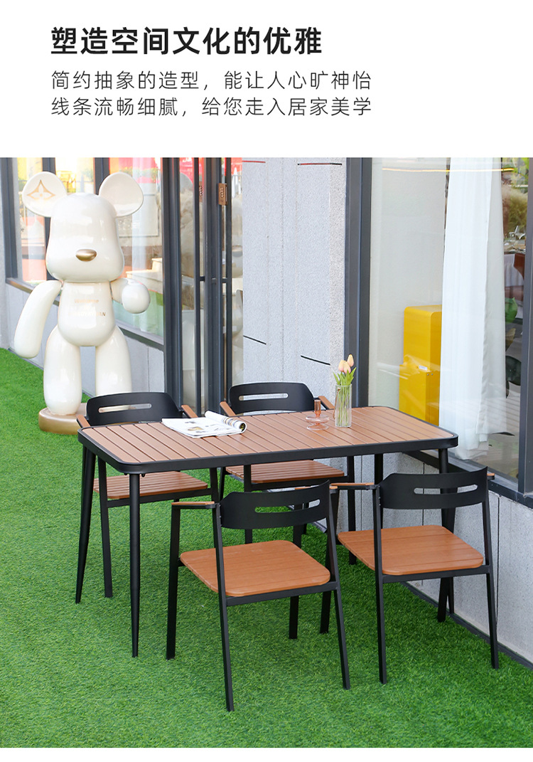 야외 테이블과 의자, 안뜰 정원, 야외 플라스틱 목재 레저 밀크티 숍 테라스, 쇼핑몰 카페 야외 테이블과 의자 조합스토어 가기
