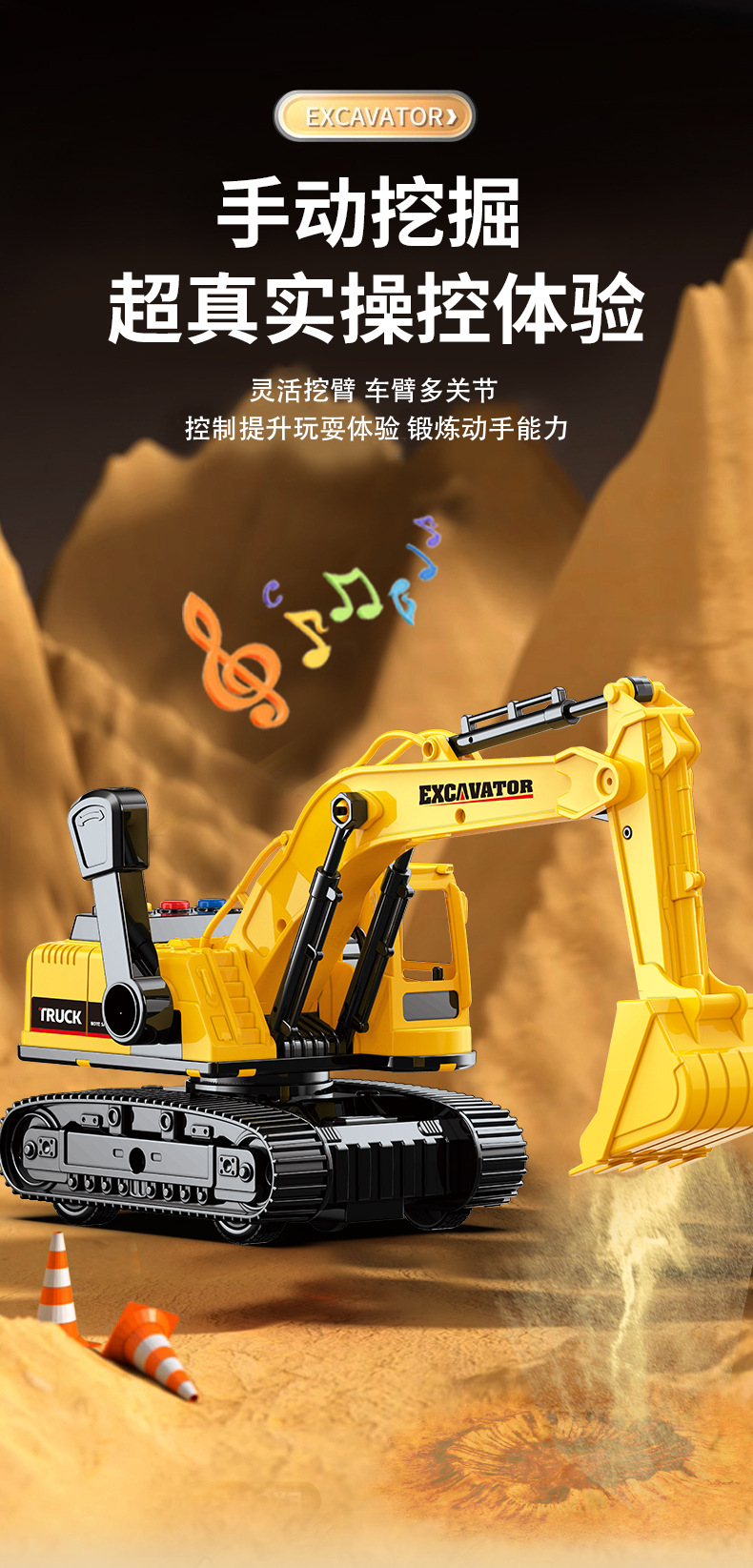 • 대형 수동 굴착기 - 노란색 [빛과 음악] 무료 시뮬레이션 스톤 10개 + 드라이버 2명